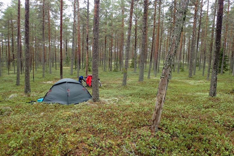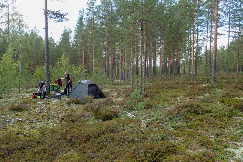 Eventually with about 25km to go we were back on the road, but it was quite quiet and we were not on it long before turning onto a minor road. We are right at the coast now, the Gulf of Bothnia. We decided not to use a laavu tonight but camp in the forest which is lovely.