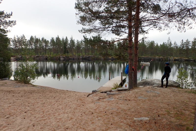 We had very heavy rain from about 15:00 for a couple of hours. At the time we were in one of the kitchens and the campsite was just overflowing with water. It stood in pools by the end of it. Luckily our tent was in a well-drained spot under pine trees. The campsite is quite open and right on the coast and at a marina so there is lots to look at, including a competitive frisbee golf tournament which got underway over the canal after the rain. You see frisbee golf courses everywhere in Finland and people get quite serious about the game, to the point of carrying a backpack with MANY discs, in the same way as actual golfers carry clubs.