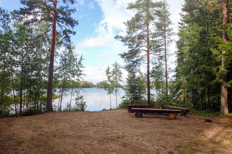 Our first day riding in beautiful Finland! We woke to really good weather and although it was partly cloudy for much of the day we were really happy to see the sun and also blue sky for at least some of the day! It was quite a feat getting ourselves and bikes out of our lovely lavuu campsite first thing, but we managed by first carrying our panniers and bags up the steep hill, and then Mike brought the bikes through. We packed them up top and then rode off. We had a coffee break after 20km at a lovely rest area and then another coffee break 20km further on as there was a sign which advertised coffee and a doughnut for 50c! Who could resist? The coffee was suprisingly good, proper brewed coffee and we appreciated the donut! It was a large souvenier/everything-you-want-to-buy type shop. I got my Sami flag for a third of the price that I saw it for at Jokkmokk. We also got another pack of mozzie coils. The pack we have doesn't seem to burn very well; maybe it got damp? We sat down to have our coffee and donut and then were on our way.