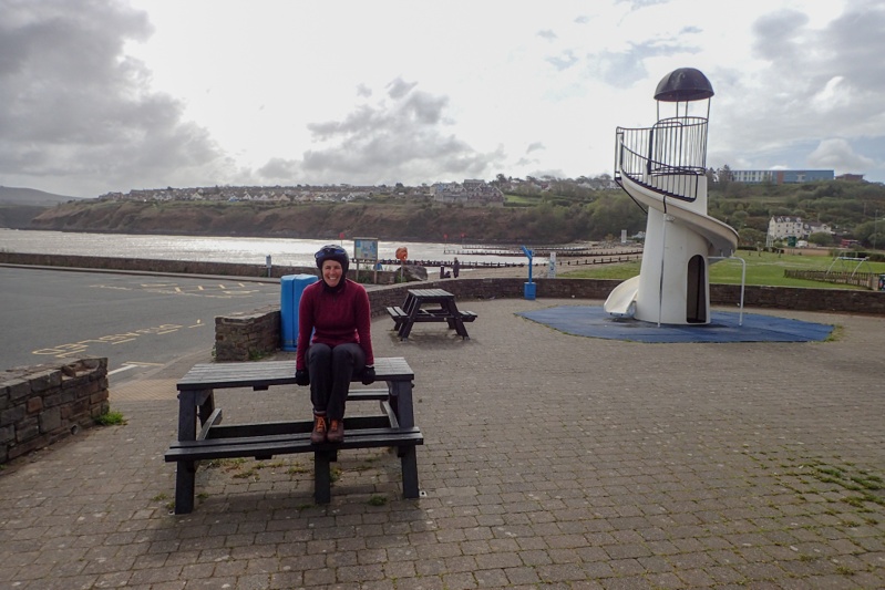 The weather forecast here is pretty accurate and so we were snug in the very well-equipped camper's kitchen until the evening as the rain fell. It rained all night until about 08:00. We had a short day planned anyway, which fitted in well with a late start. We left around 09:30 and had a climb out of the valley and then down into Tralee where we pulled in to the first pizza restuarant we saw and demolished two large wood fired pizzas. Yum! Tummies full, we set off again. Although the day was dry, it was a little breezy and in Tralee even the locals were walking about with down jackets on, tut-tutting about the weather.