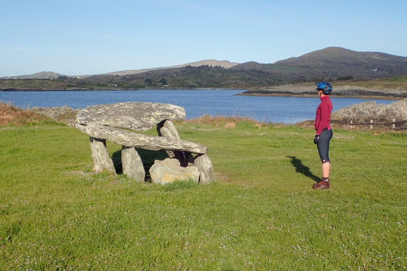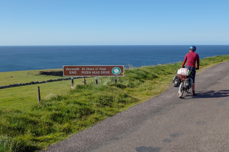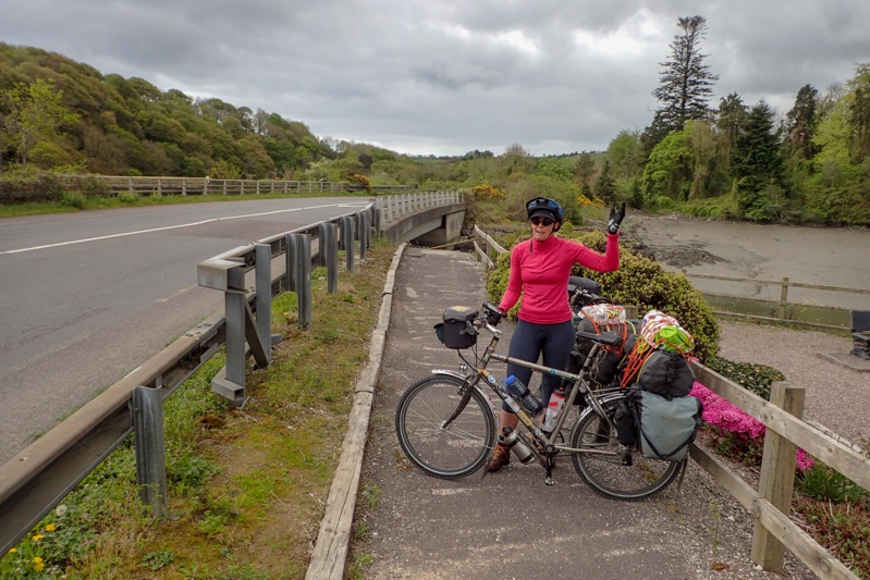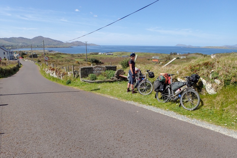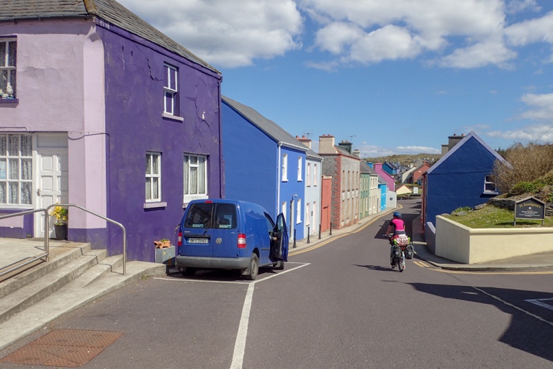 This area of West Cork is very interesting as you do see sub-tropical type forests, massed with ferns and flowering shrubs in the woodland areas and little gullies. It is very pretty. At one point we took a side road to the most delightful village of Eyeries with its teeny main street, colourfully painted houses and even a campsite for tents only! Along this road we met a man on a bicycle who made suggestions about our route based on local knowledge. The whole day was great, no wind at all and even warm enough to warrant short sleeves! It is so much easier when the weather is good.