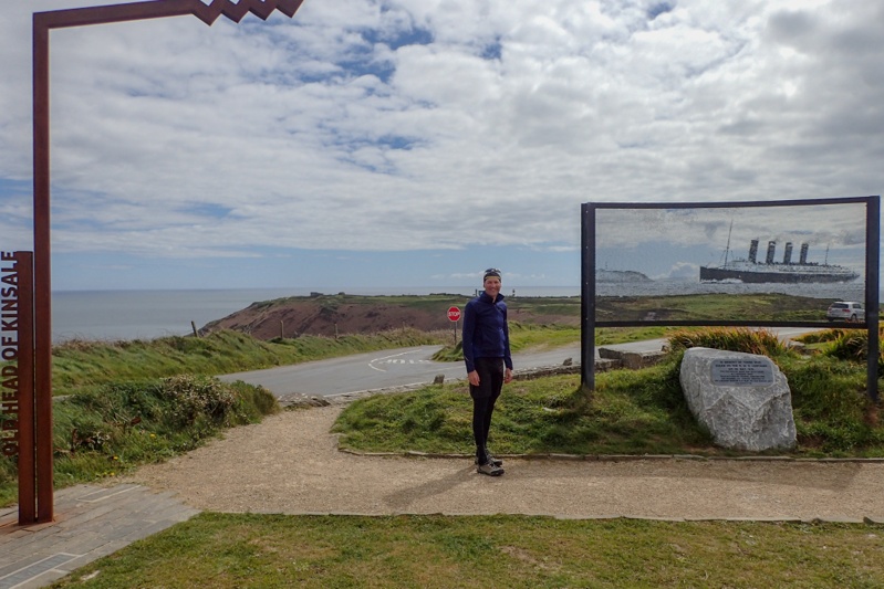We were keen to get to the Head of Kinsale which is a headland of historic significance. Part of this is the sinking of the Lusitania out to sea here by a U boat in 1915. It was a bit of a climb to get out there but the views were beautiful and panaromic. We could not believe how far you could see in every direction, especially after all the misty days we have had! A couple of campervans had stopped up there too, with the people not even bothering to get out of their vans! We spent some time out there and then headed back, ending along the water's edge again as the Wild Atlantic Way hugged the water's edge. We had quite a headwind (westerly) but it was ok. I had been very tired all day with various aches and pains so our progress was slow. We ended up at the campsite at 16:15 which was a long day, but not bad considering all the things we did during the day. The campsite is great, hot showers (included in the price) and cows live over the road.