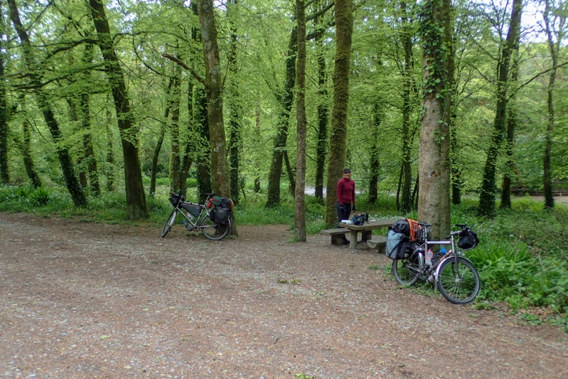 We were looking at an early finish, before 14:00, but actually we were feeling quite tired as our only break had been in Listowel some hours ago. Anyway, we had no other towns to pass through and arrived at our campsite quite hungry. By the time we had set up and showered etc. it was after 15:00 so no wonder when we had eaten last at 09:30. It is a wonderful spot, in a large old country house estate forested with trees of all kinds. The facilities were great with a good campers kitchen again. We went for a walk to see the Arboretum and the ruins of the old country pile.