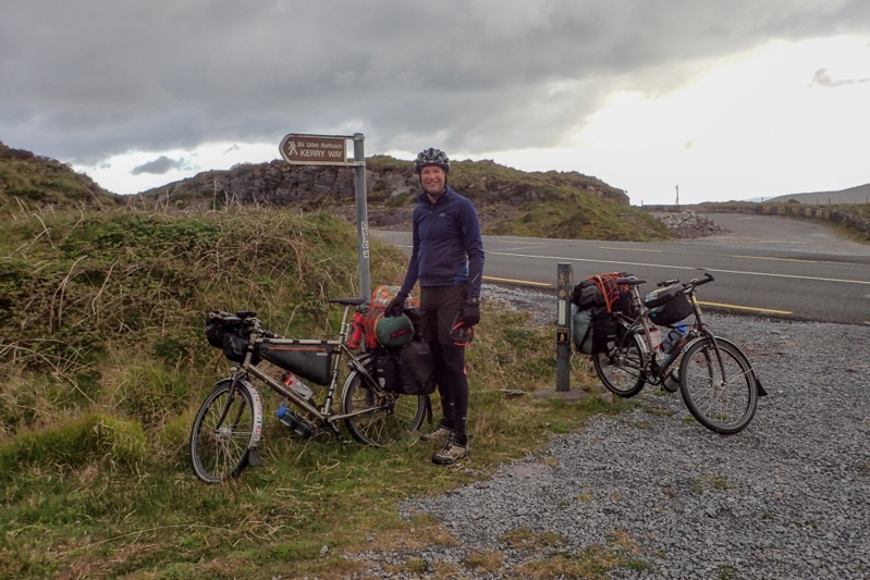 The little road rose gently and you just knew that it was going to bite later as the height we had to reach on the pass remains the same, just the distance to get there gets shorter. The result is: STEEP! Anyway, we eventually left the paddocks and woodland behind us and started to reach the bare slopes of the mountains. The climb up was steepbut manageable (very steep in small bits) then you popped out on the top. There we met a Polish man who is a a keen hiker, taking time off as we do to hike in countries around the world. He made some great suggestions about cycle touring in Poland which is definitely on our "to do" list. The view was wonderful up top and the descent was quick and cold! We saw some peat being harvested. We stopped for a toasted sandwich at Glencar and then continued on to Fossa and our campsite. We stopped before at a small shop/post office that you get in all villages in UK and Ireland for an apple pie. Our campsite has good facilities such as a fully equipped kitchen and laundry so we have done washing. The weather has turned a little wet and windy this afternoon.