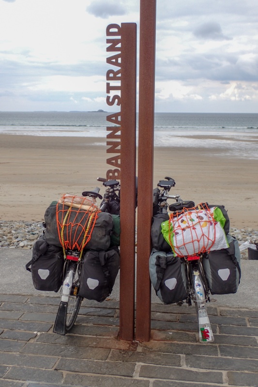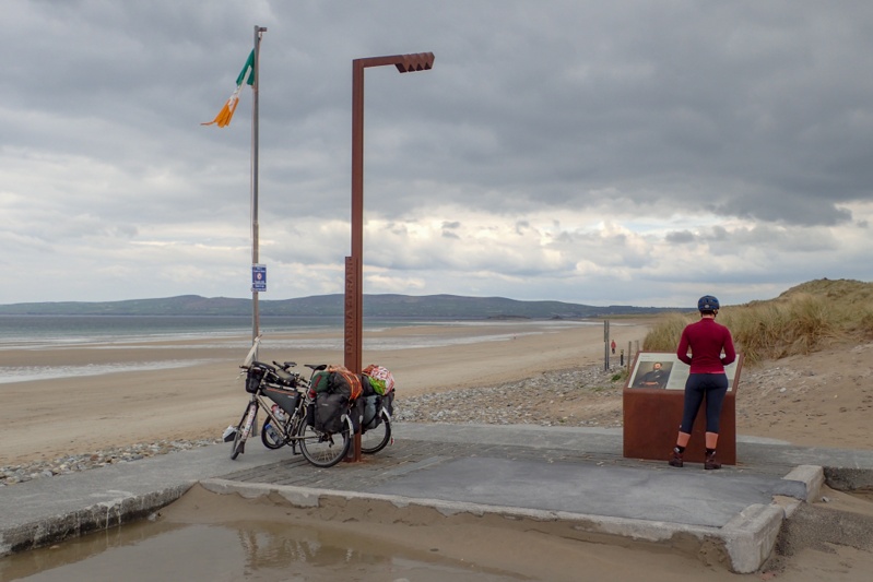 We had a relaxing day off yesterday and decided to amend our route slightly from Sligo to Donegal. We set off at 07:30 and had a quick 35km to Sligo. Just before the town we joined the cycle route and were on it again after the town. We quickly learned once again that cycle routes are for the birds. 14% gradient climb. I ask you? Especially when there is a perfectly good, albeit busier road with a proper shoulder to ride in? We made some changes on the fly and smoothed out some of these crazy climbs. We stopped in Sligo to eat and I bought a hat. The landscape is once again different, with steep mountain slopes and the famous hills around Sligo. Then we were back on the coast with dunescapes and sea views once again.
