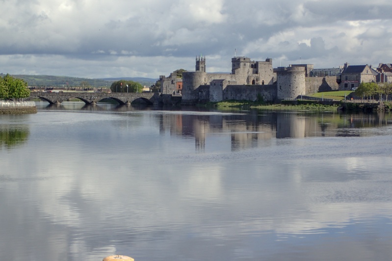 As usual, small farm roads with little traffic made up the fabric of our ride today. Many cows to see, some donkeys. Pretty farm houses. When you start getting used this sort of view, you are really spoilt. Next stop, Limerick city. This is the biggest town we have seen since London. It had a great cycle way going in. First city we've seen wiith a 24 hour shared bus/bike lane. Usually they are only during peak times. No buses to speak of anyway! We had seen a place called the Milk Market advertised for all sorts of meals etc., a food market. Unfortunately it was not open yet at 10:00. We bought a warm meal elsewhere and sat outside to eat. The weather was good and the views of King John's Castle over the River Shannon were great. Limerick though, not so great. The place had a bit of a sad atmosphere. Or maybe that is just my memories of Frank McCourt's Limerick (there is a museum for him housed in the old schoolhouse he taught at). There seems to be a lot of people, men actually just hanging around. We left as soon as we could, now towards our end point at Lough Derg.