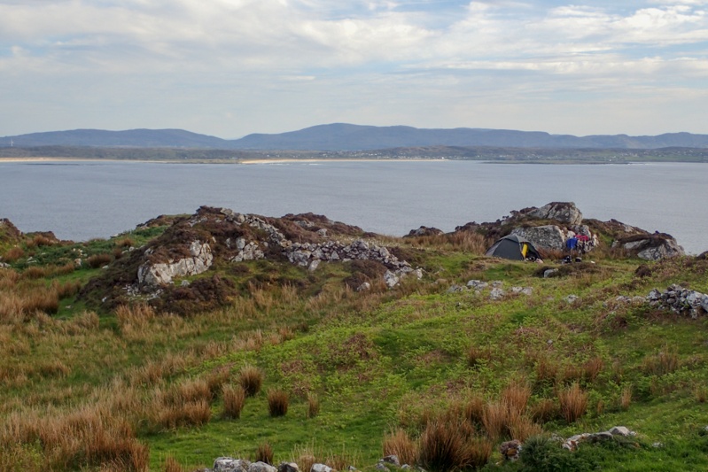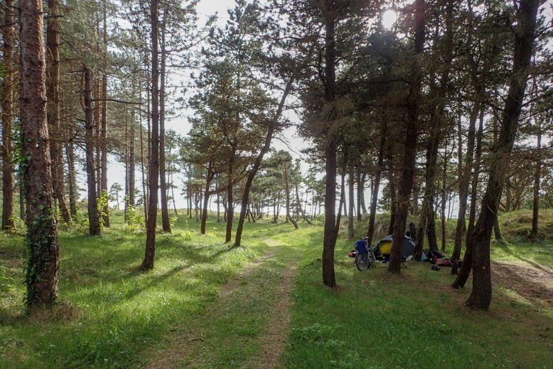 Our bush camp was on a stretch of access road leading to a beach. There were a few options and we picked a little spot under some pine trees along a walking path. It is a lovely spot. We quickly showered and dressed to try to avoid being plagued by midges. The fact that they are here at all is a good sign, spring has come to Ireland!