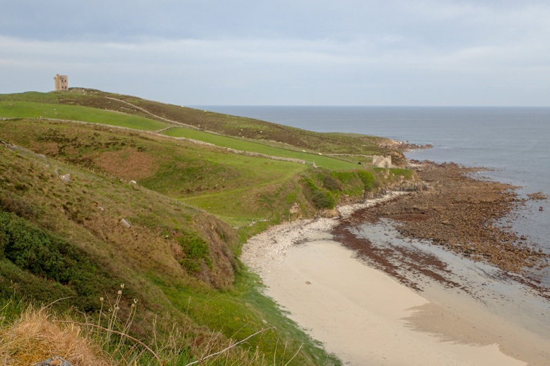 Just after Kilmakilloge Harbour we came across the perfect bush camp. Everything is fences here in Ireland, but along this road there was a stone wall and there was a gap in the wall through which you could access this tiny flat grass clifftop. We just didn't have quite enough water. We headed back to the cemetary a couple of km further back and asked the man who was mowing if there was any water (our experience is that there often is in churchyards). There wasn't, but he kindly told us about a friend's bore a little way back that we could get water from. The thing was, we found it very difficult to understand him. He spoke English but with a very strong regional Irish accent. So we kept repeating everything he said, "Go down the road here", "go right over a bridge" , "go to the end of the road" he must have thought I was a little slow! Water successfully retrieved (with only minor disturbance to cows sleeping in barn), we backtracked, thanking the man, Frank(?), as we passed him at the cemetary. We set up camp and couldn't believe our luck in this weather we are enjoying on the West Irish "Toes". If we were to expect brutal conditions anywhere, it would be here. We are Happy Campers!