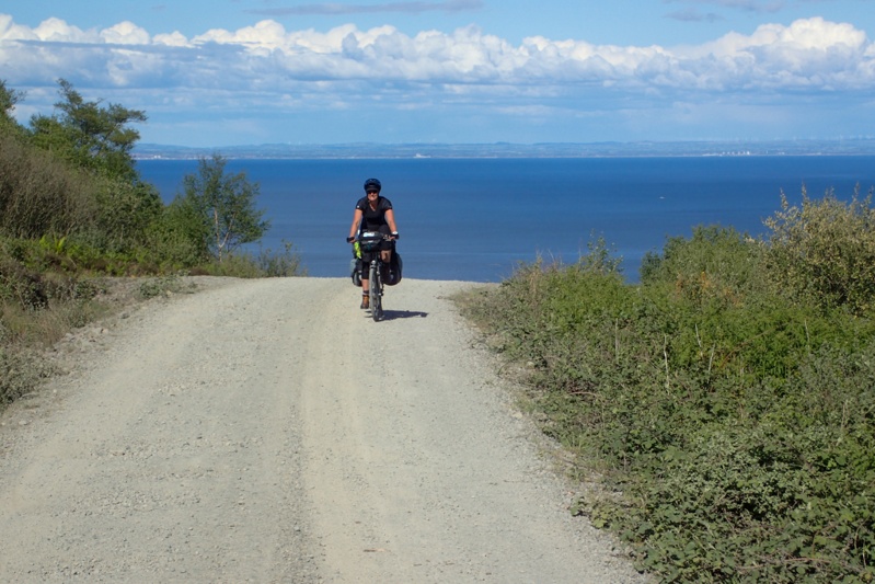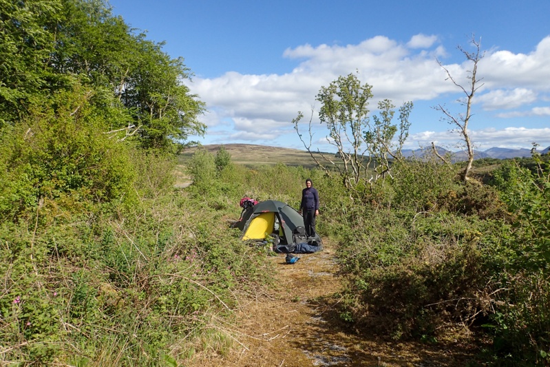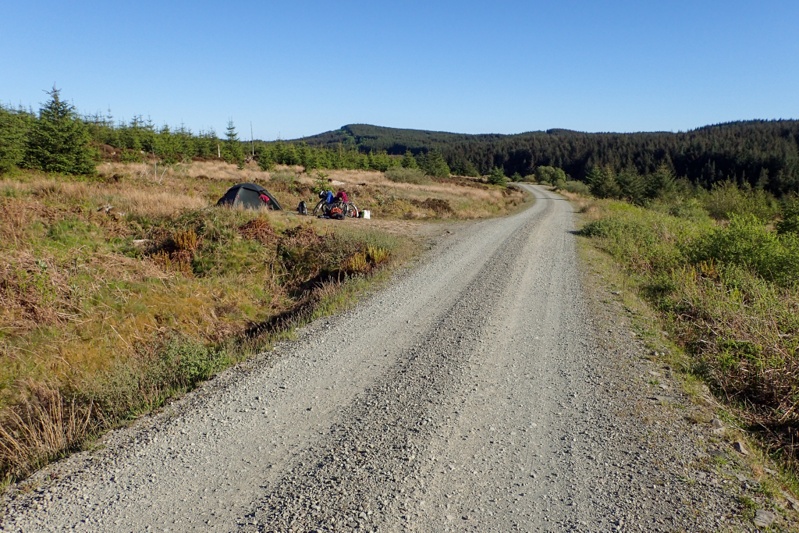 It was dead quiet on the forest road; there was no sound at all. Then suddenly we were both awake at 01:00. The sound of footsteps as someone was walking along the stony road surface meters from our tent. At these times you forget where you are and just hold your breath and look at each other. The person passed us and kept walking and the crunch, crunch of the footsteps faded into the distance. Bearing in mind that we were in the middle of nowhere, the only human activity within 10km of us in either direction was the forestry company clearing logs and they had their own transport. The Arran Coastal Walking Route does take in routes around here, but what would possess someone to be out walking on this road at 01:00? It was a bit difficult to sleep after that. The night sky was very bright with stars though, and it was possible that the person had not seen us at all, but our tent was about 8m from the road so they must have seen us. Anyway, one of life's mysteries. We were tired in the morning and left a little later than usual. About 200m down the road we came across a river and a flat area for camping with a picnic bench. It is always a wrench when you discover a better campsite so closeby. We were happy with ours, but a bench would have been great!