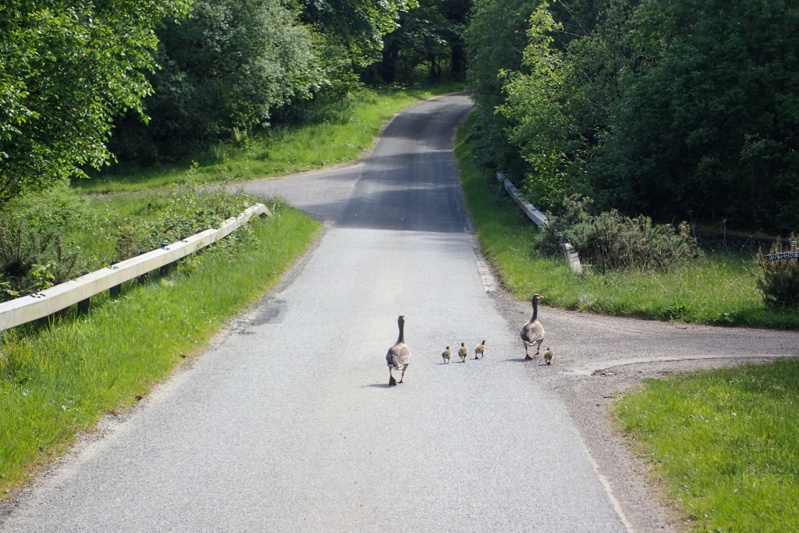 The ferry trip was 2 hours again as it was to get to Islay yesterday (Port Askaig). We sat on the same seats in the coffee lounge to charge things. There was a group of German blokes who seemed to be on a whiskey tour of the islands and were quite jovial. Our ferry arrived at 15:00 and we had 36km to ride along the peninsula. The ride was lovely with a few small climbs along a single track road. Very pretty farms and woodland gardens about. you see a lot of rhododendron bushes all over, as you do in Ireland. Very brightly coloured. We slowed down for a family of geese with four little ones to cross the road. Mum and Dad flapped their wings wildly as we tried some gentle encouragement, leaving the goslings just to run screaming with their teeny feathers flapping.