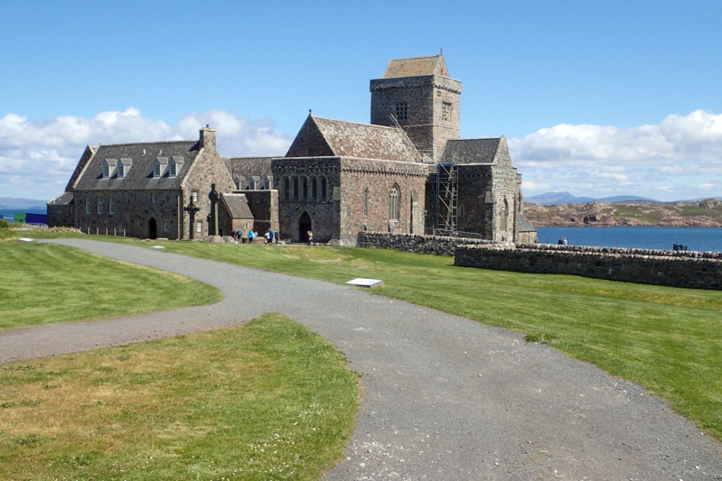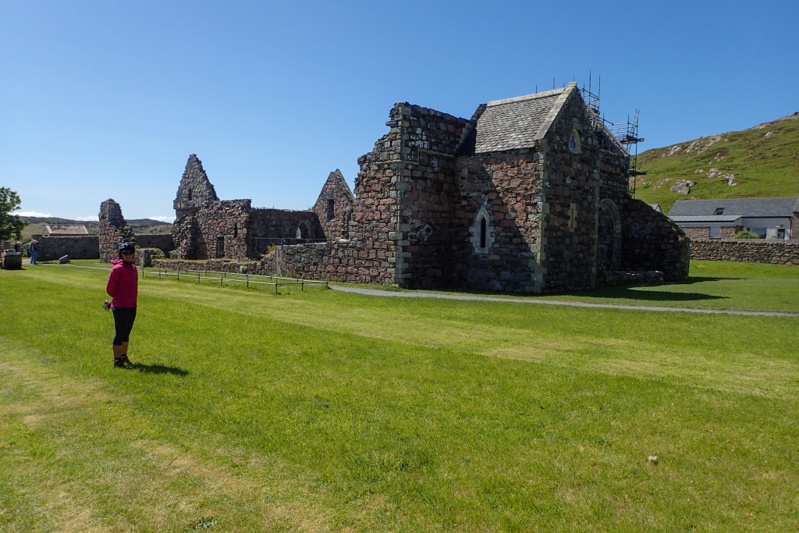 It was on the section of road to Fionnphort, the ferry point to Iona, that the passing issue became more irritating. There are many passing bays, but as a cyclist you are often caught in between two and instead of seeing this and waiting for us, in most cases the oncoming car just kept going, sometimes without much thought for what we were going to do. Of course the same applies to campervans and on one occassion even a truck who determined just to keep going until we stopped opposite each other in the narrow road in a stalemate. As I was making the split decision whether to get off my bike and push it off the roaad around him or whether to squeeze passed, I glanced up at him from my vantage point right in front of his wheels. He looked at me and revved his engine as if he weas just going to drive. A bit unnecessary! Anyhow, we got there safely and the ferry port was packed. There were a few buses and many cars. People cannot take vehicles onto Ioana unless they are residents, etc. It is a very pretty place and quite interesting. Very busy with daytrippers. There is the original Abbey and the remains of the Nunnery. The entry fee for the Abbey was GBP9.90 which is a lot to charge for entry to a church. Iona also has it's own tartan which is very pretty and I was interested in, but ludicrously expensive. The whole place is marketed to daytrippers or tourists. It is culturally significant, but that is very much down played. Even so, it was certainly a worthwhile experience to go there.