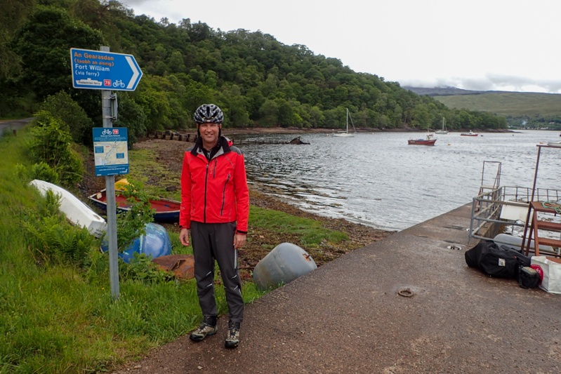 We had decided to take the direct main road to Fort William on the strength of the cycleway we had yesterday, but it stopped today after 1km. We still had the option of turning off it onto a quieter road which would add on distance, but we felt pretty comfortable on the main road and we had an early start so would hopefully avoid any heavy traffic. There was some climbing to start but it settled down. We had rain on and off as well, not enough to warrant full wet weather gear, but we used our rain jackets. The hilly scenery was pretty and the lochs we passed were very still. With about 15km to go we turned off the main road onto a single track road which would bring us to the Camusnagaul ferry crossing to Fort William. This road was so pretty, all along a loch and we really cooled down! Ben Nevis was right there, the top shrouded in cloud. Pretty spectacular. We had an hour wait for the next ferry so got to thinking about booking into a hotel in Fort William. We had only stayed in one hotel after starting in London, which was in Coleraine three weeks ago. We felt that we were due a little top up, particularly with the recent weather. Booking.com proved one thing - hotels in Fort William are pricey! Nonetheless we found a good one right in town and called to check they could store the bikes. All good, we booked in. Brilliant! We did not feel like going any further than Fort William. It feels like we are heading back to the choices offered by civilisation again! Like pizza for lunch... and an outdoor store for me to get yet another pair of gloves.
