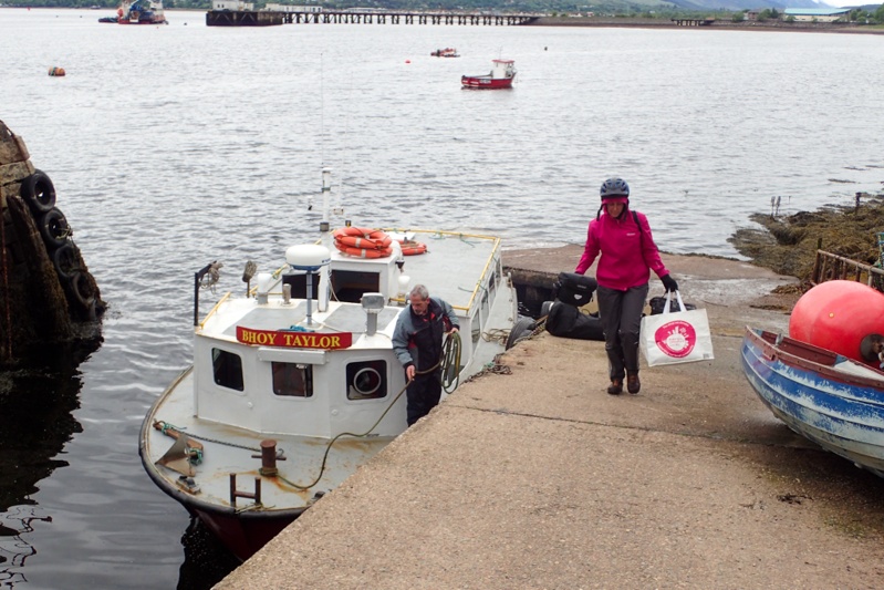 There was a little bus stop shelter to wait in for the pedestrian ferry and we unpacked our bikes whilst waiting. Then the best thing of the day happened, we got a text from Post Office Lady to say she had arranged for our parcel to be held for collection by us tomorrow morning in Fort William!!! Whoo hoo! Great news! We are now happy cycle tourists again. The ferry arrived and three people got off, a man who got onto a motorbike there, a man and his dog, and another cycle tourist. He chatted a bit to us about our route, he was on a three week trip from Inverness to Mull. Our bikes were duly placed on the roof of the tiny ferry on their sides (they were a bit surprised!). We hopped on and were taken across the water to Fort William. First stop was pizza for lunch across the road; I had the Ben Nevis Pizza, yum, while Mike had the normal Pepperoni. Then we strolled up the main mall and I got my gloves and we shopped for food. Then onto the hotel where we enjoyed being indoors.