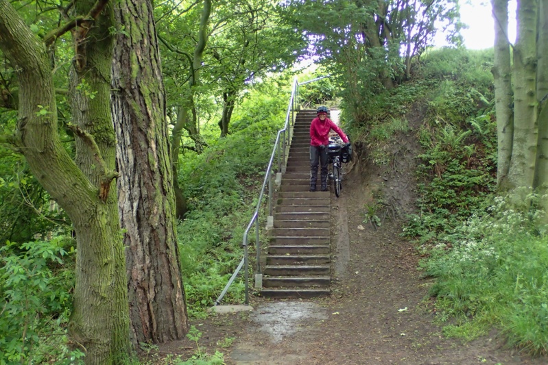 We were not in a hurry this morning as we were going to Nordic Outdoors, a shop in Edinburgh city which opened at 09:00. We woke to a sunny morning with those beautiful views, after what had been quite a chilly night. Our tent had attracted quite a few midges so we were back into midge gear before getting out of it to cook breakfast. We set off around 09:00 via a different route to the one we walked up last night. This entailed pushing our bikes over very knotty tree roots though a small, steep forest track and then down a very steep stony path. After leaving Pentland Hills we popped through the suburbs onto ANOTHER great rail trail and then back onto the Union Canal route. Being a Saturday and a sunny one at that, many people were out walking and cycling. We were soon into the city centre. We have shopped at Nordic Outdoors online from home and also went there when we were last in Edinburgh. It stocks the good Scandinavian outdooor brands and I was looking for a replacement warm top for cycling in. If you have been looking at the pics you will be familiar with my pink cycling jersey as it is the only one I ever wear when it is cool on the bike. I replaced it with a really nice Aclima (Norway) top which is great. We also needed a small gear bag to replace the MSR kitchen zip-up pouch which has failed after 2 and a half 6 months trips, and who can blame it? So we got a cool Fjallraven one (also red like the MSR bag). We left the town via easily-navigable roads, paths and parks, made all the more easier as it was weekend! We stopped at Musselburgh, the next town along from Edinburgh and bought a Subway lunch.