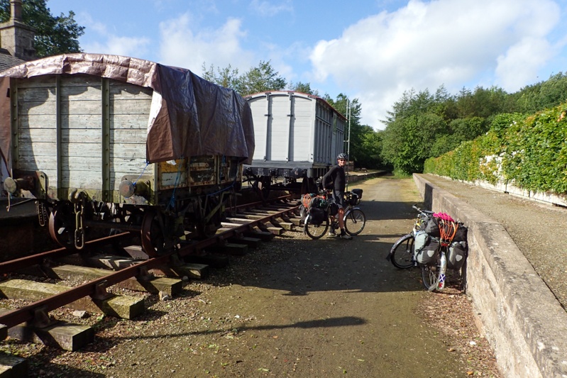 Wow, wet, wet wet. That was actually another Scottish institution I loved as a teenager. The rain did not let up at all yesterday or last night, but we woke to actual sun peeking through cloud and thought "Good enough - we'll take it!". We were awake before 05:00 and although we tried to stay in bed a little longer, ended up on the road at 07:00. This is one great thing about being on the east of Scotland, it is midge-free. We set off on Cycle Route 1 again and after 25 quite hillly kilometres arrived at Maud where we found a sheltered spot from the southerly wind that we had today, to have a coffee break. A little old lady passed walking her dog and looked embarrassed about yesterday's weather, very disappointing to have that much rain! At Maud we joined the amazing Formartine and Buchan Rail Trail which we ended up remaining on for the day.