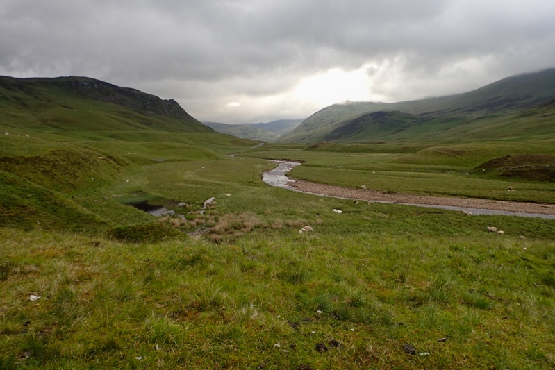 We stopped at pretty Ballater on Deeside for brunch and then crossed south over the river, following a minor road and roadsigns with Queen Victoria's profile. They don't actually advertise Balmoral on this road, you draw your own conclusions from these signs. The weather was quite changeable, cloudy then sunny and so on. It began to rain so we put on wet weather gear only to take it all off again 2km further on in bright sunlight! You can't really complain about that can you? We really loved the road we rode from Ballater until Braemar, it was so picturesque with forest all around and a gentle gradient. We came across the entrance to Balmoral on a bend and took a photo. A man on gate duty kindly came to speak to us to say we could take our bikes in with us and looked a little taken aback when I told him we weren't planning on going in as we were trying to beat the rain that was forecast for this afternoon. We stopped again at Braemar which is also a quaint village and bought food for supper. After this we followed a small single track road directly south into the headwind we knew was coming. The forest was now behind us and we were surrounded by highland heather-strewn hills. We were still following a river upstream, now the Clunies as we had followed Dee upstream all day. We had been climbing at a steady 2% gradient all day mostly and rejoined the main road to continue this climb to a height of nearly 700m. This is actually the highest point we have reached all tour so far. The road was sublime, the climb was a piece of cake, it was mainly sunny, but we had the headwind we had been due for months and kept managing to escape! I really struggled as I do going uphill into the wind and the last 10km of the day were a major countdown! We rested at the Glenshee Ski Area and reached the top of the climb just after, dropping down rapidly for about 3km until we found the perfect bush camp just along an old road with a collapsed bridge. We put the tent up rapidly as the rain was coming and jumped inside before heavy rain hit. We had arrived just in time to miss it! It was 14:45 but we had left camp this morning at 07:00, so still a full day. It had been a great day, except for the wind over the last 10km. We would highly recommend this route. We will have nearly 100km tomorrow, still south and the headwind will still be a factor. After the rain stopped we had a COLD river swim! Later in the afternoon we watched a herd of deer (and some sheep) just on the hill behind us.