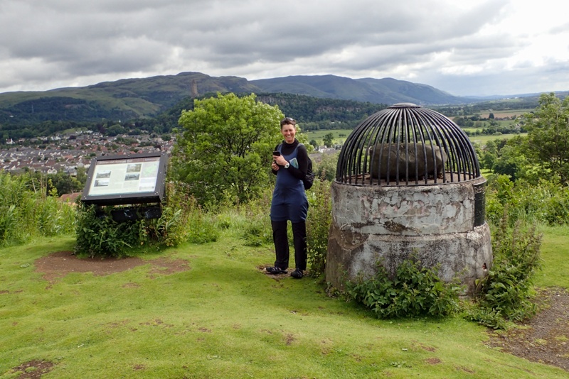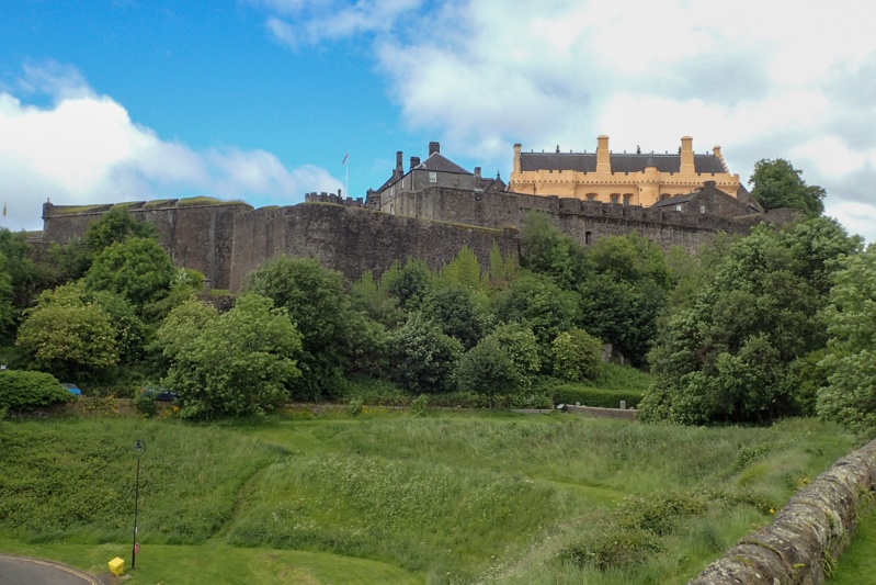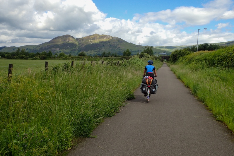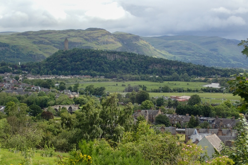 We woke to sunny skies! Fantastic! We had a fabulous ride to Stirling. The route was pretty easy to Saline where we hopped onto a rail trail all the way to Cackmannan, so it just got easier. After that we were really in the outskirts of Stirling through Aloa with it's tower and back onto a rail trail type route. It was a sunny day with some cloudy periods but we were in short sleeves from the start. Wiil wonders never cease? We could see Stirling Castle in the distance all the way from Clakmannan and then as we drew closer the Wallace Monument against the impressive, stoney Ochil Hills. As routes into cities go, this one into Stirling rates amongst the best we have experienced (and there have been many). We arrived early and waited for our room at the Premier Inn. Once we had showered we set off to the closest Subway for a fresh meal. Lately we have been craving fresh fruit and veggies. We will have a rest day here tomorrow and will check out the sights.