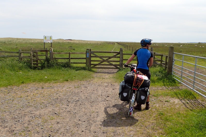 Big day today created by the weather forecast for tomorrow which is for HEAVY rain. We decided to ride extra today to minimise time spent in the wet tomorrow. The weather today was overcast but it was still lovely and warm and we set off in perfect conditions in short sleeves. As always, buying a new item will cancel out the conditions which require it! We had a coastal route for much of the day and the views were good. There is a much talked about climb out of Pease Bay which is super steep. As we came down the hill into the bay we crossed a ford at the bottom and then straight into the climb which is 14-15% grade on a single track road but only for a few hundred meters. Still, had to hang on! We left early and there were no cars at all which was good. Horrible to have cars trying to pass on a single track road with that sort of incline! After this you continue climbing but it is much less steep. The route continued through the rural Scottish Borders until Berwick-upon-Tweed. This was sort of our half-way mark and we had an early Subway lunch. Leaving the town over a lovely, tiny bridge not really suited to cars an idiot in a station wagon squeezed passed us, dangerously close. There was no reason for this as alongside this practically pedestrian bridge there is a normal size bridge for any type of vehicle. Even a guy walking along the bridge who witnessed it shook his head. Anyway, Mike caught up with the guy when he got out of his car after a few hundred meters to go to a corner store and said, "Hey, are you aware how close you came to knocking us off our bikes on the bridge?". To which he mumbled something about how we shouldn't be riding two abreast, which we never do so don't know what he was talking about there. Idiot. After the town you are in Northumberland, England, and as is expected the cycle route goes to crap! Everything was going well, gliding around the coast, until BAM, steep uphill on rough stoney track, bumpy up and down, then to SINGLE track (MTB style). DO these Sustrans blokes not understand what cycle tourists carry? The joke of it is that at the start of all of the this is a fancy stone carved sign saying: Northumberland, Area of Outstanding Natural Beauty. This AONB concept is an English one. The Scots understand that it will be obvious to anyone what fits this description without having to be told. Anyway, main point being as you are negotiating a 15cm wide rutted track on your bicycle you cannot look at anything around you, beautiful or not. There were the obligatory gates that required opening and closing and at one point, even lifting your bikes onto a bridge. We started to see our plan to fit as many kilometres as possible into this day disappearing.