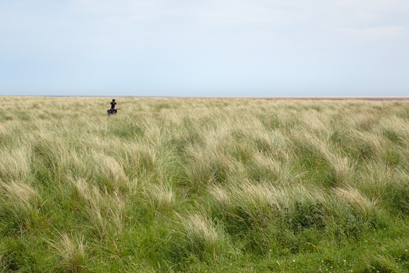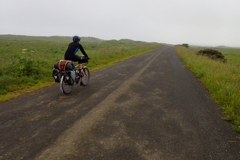 We have been keeping an eye on the weather forecast as it was for heavy rain today but it ended up coming through overnight and rained hard. We were the only tent at the campsite and many of the early dog-walker caravanners expressed concern that we had survived the conditions! By 07:00 the rain had stopped but it was very misty. We decided to get going anyway at about 08:30. Last night just before bed I innocently asked Mike for the website of the campsite we were going to today. It is a farm stay place just near Cresswell on the coast which promotes itself for cycle tourists and walkers. It has a dorm style set up as well as campsites. When I looked at the website though I noticed it only opened for camping in July. This in turn created a whole lot of issues as there were no other options for camping anywhere between there and the ferry in North Shields (Newcastle). This might sound crazy but it is true! There are many static van parks but no campsites. So we started looking at Premier Inn Hotels and there was one a bit further on, and then another even further and then one 500m from the ferry terminal. We were thinking mainly that the closest one at Ashington would be the right one as we had done the extra riding yesterday and were a bit tired. Anyway, we set off with that in mind. First decision came on the way to Alnmouth where we had to choose between the coastal route and the inland road. We took one look at the coastal route bouncing off into the mist, all potholed and puddley and went inland, even though there was a bit of a climb and some extra distance. We are wise from hard earned experience!
