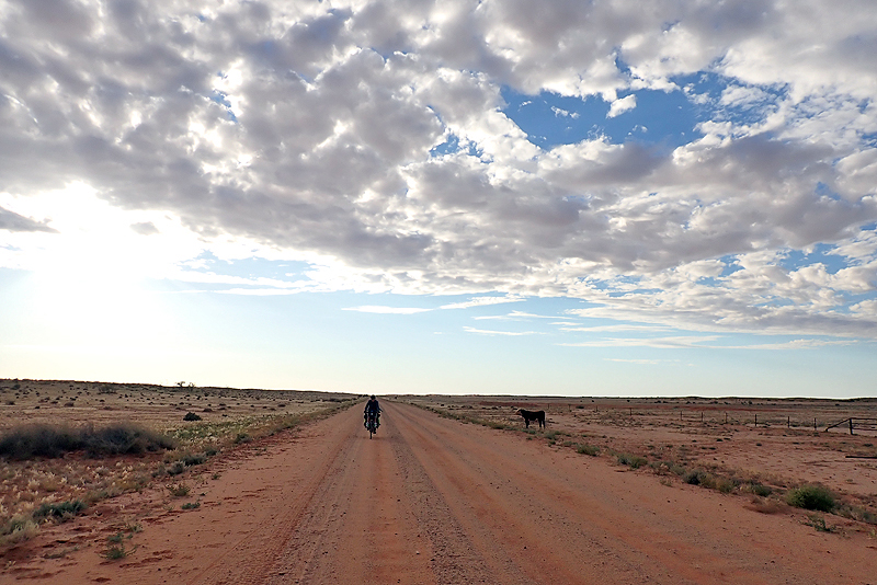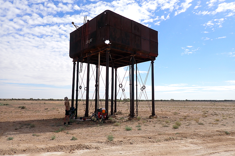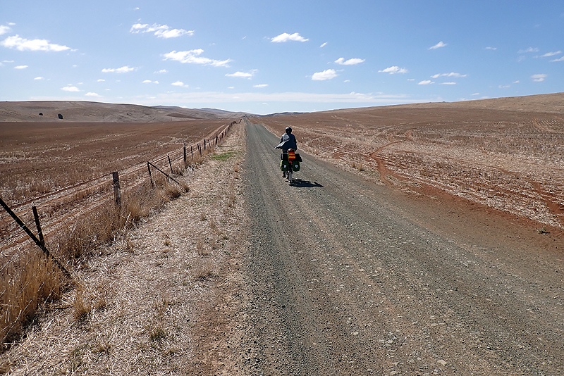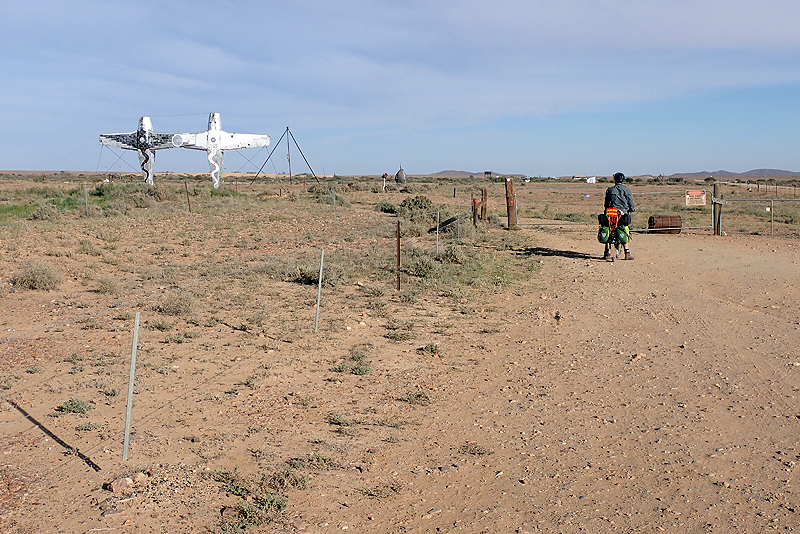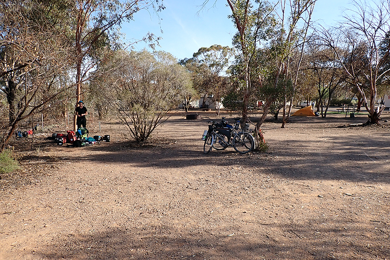 We had a couple more equipment issues today with a bolt holding one of Mike's water bottles in place under his downtube shearing off and he also found a broken stay on his front rack. He was able to repair the latter, but we will need to get some help with the former if we want to use that bottle cage mount. We seem to be able to take this in our stride more now, it helps to be on a decent road! We only have about 40km left in SA and reach NT tomorrow. We have spent 28 nights in SA.
