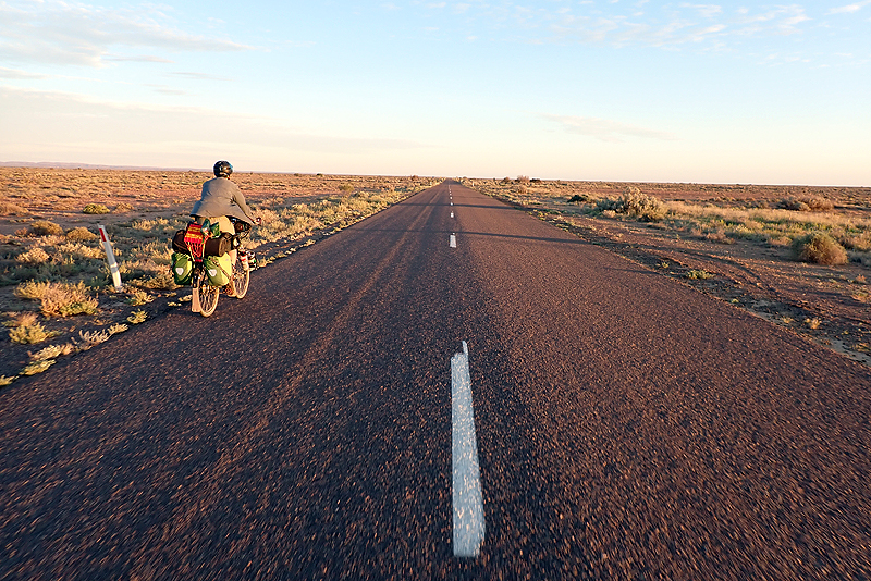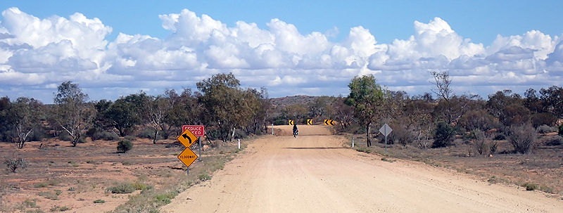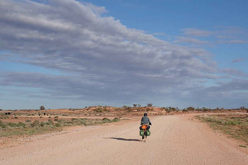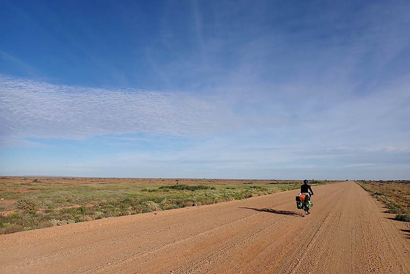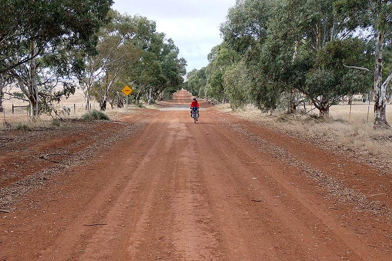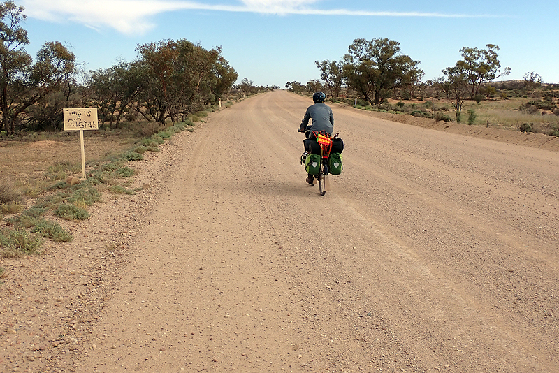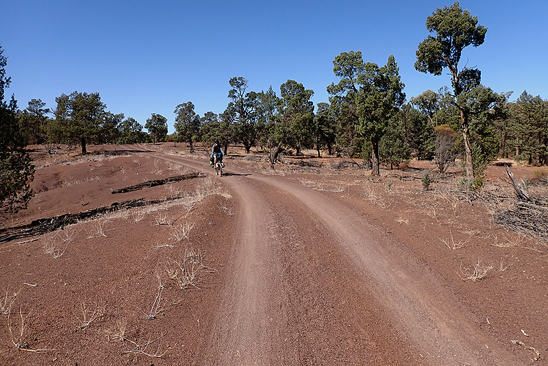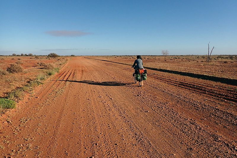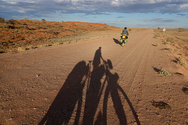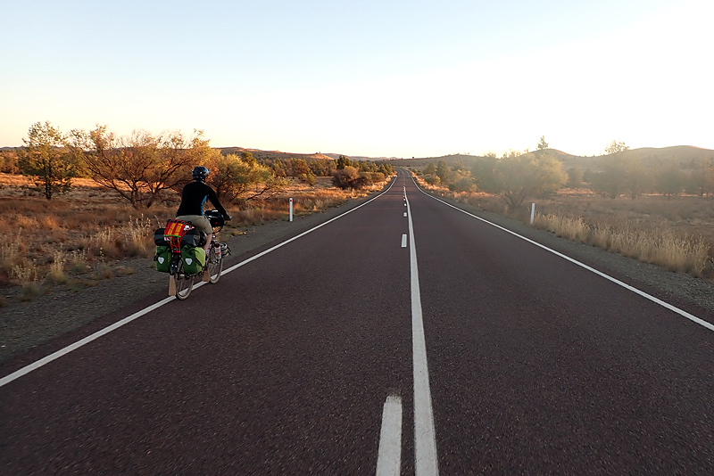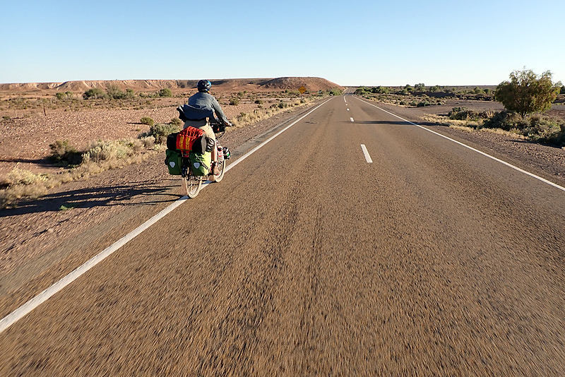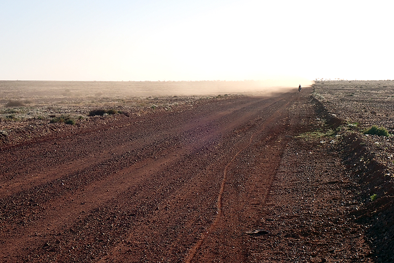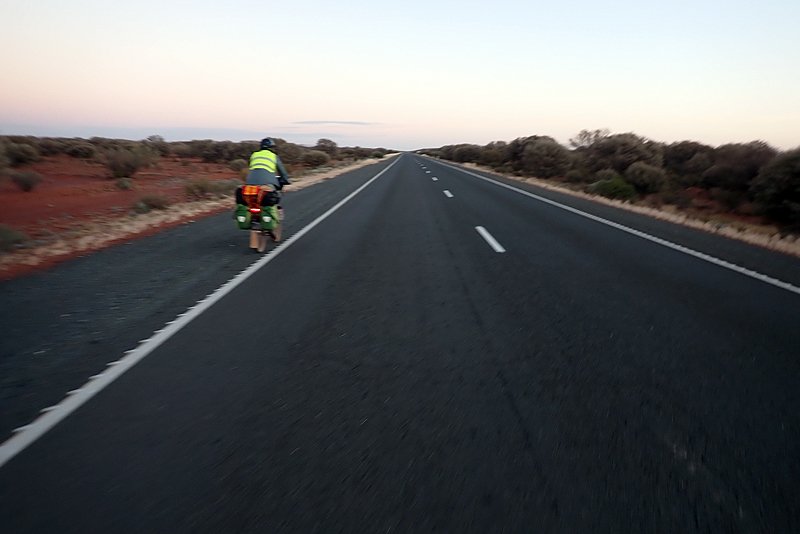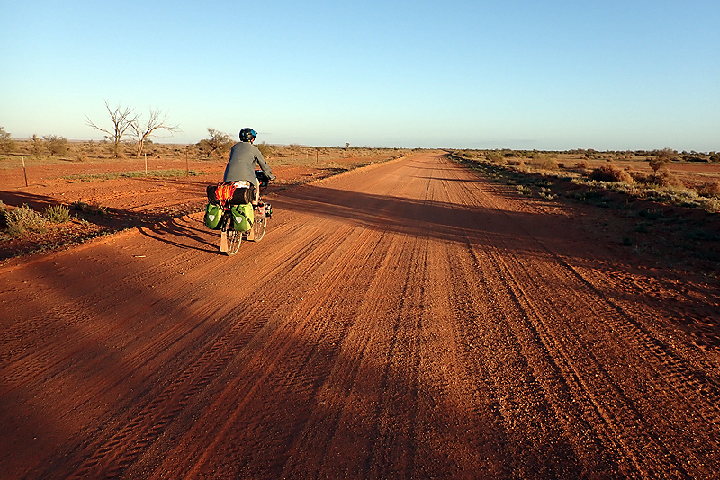 Judith (as she was falling asleep), "Do you think we need to worry about dingoes here? Sleeping with the tent outer open makes me think one could run off with one of my cycling boots." Mike responds, "I don't think there is anything here, besides dingoes don't steal boots, they only steal babies." So ends another evening in the great Australian Outback, and these are the things that occupy our minds. Setting off this morning it was only 3 degC and we were followed for a way by a pair of raptors. Smart hunting, they are looking to see if we send any small rodents or rabbits scuttling away and then they will pounce. We have had this sort of bird behaviour before on tour.