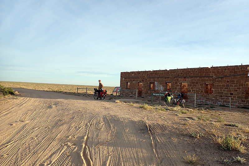 We arrived Marree at 09:00 and it has a frontier feeling. It is interesting to read about the history of the Afghan cameleers and the Old Ghan Railway. There is a railway museum at the old station. The railway only stopped runnig in the 1980's. A strange lady came to speak to us, starting by asking if we had had a look at the mud mosque yet (a relic from the cameldriving days) and ended up by telling us the water irrigation was illegal and the government pays everyone hush money... Hmmm, Nutter! We went to the post office to pick up our food parcels which we had mailed from home just before leaving. As usual we wondered where everything would go and then it all disappears into panniers and seems to fit okay. We went to a picnic site in town by the old station to fill up our water containers. They had rainwater tanks there so we can fill them up and then Steripen the water. An older gentlemen came to have a chat. He has lived in Marree all his life, he is descended from Afghan camel drivers and he lives in an "Afghan house" in the town. It seems the town only had Afghan housing and railway worker housing. He worked on the railway until it shut down and then he did work in the hotel. He said that there are only 80 permanent inhabitants in Marree, but during the railway heyday this was much higher. The track required maintenance all the way up to Oodnadatta and beyond. We asked about the summers here and he said that they all have aircon at home now and you would die without it as the temperatures get to 50 degC. In summer there are hardly any visitors. The closest main centre for him for medical appointments and the like is Port Augusta and he said that everyone knows if someone is going down and or coming back and they will pick up supplies for you. Otherwise the Foodland at Leigh Creek will deliver. We are always so interested in the way people manage living in small communities. Perhaps the lack of choice in what you eat is made up by the sunrise you can watch each morning?