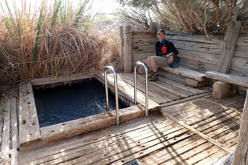 The road was fairly rubbish for the first 10-15 km, mostly either corrugated (around 200 mm deep) or deep sand, so just the things to hack you off. We have realised that as most of the traffic goes in the direction of William Creek or Marla (same way as us) the left hand side of the road is mostly completely crapped out. So we find it easier to get a rideable line on the right hand side AKA the wrong direction. Very little traffic though today, less than yesterday and hardly anything coming towards us. We had a brief rest at Margaret's Siding, an old fettlar's building and then rested for a coffee break at Coward Springs. This is a great little spot. It's a really well set out campsite, the best we have seen here. We paid $2 day use fee which gave us access to the hotsprings, but we didn't stay for a swim. We did get water though from the rainwater tank. Out here places rely on borewater (like Marree) or rainwater. I also bought some dates which they grow here. They did have a little coffee van and will serve up your regular morning cappucino. We have our flask coffee though. We chatted to a few campers.