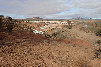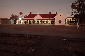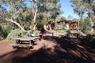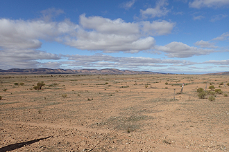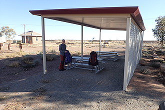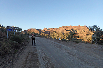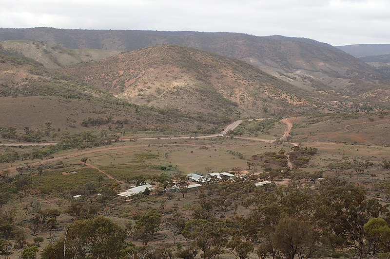 We grabbed a breakfast to go at the hotel (Holiday Inn Express) and set off around 06:30 for the short walk to the Central Bus station where our Genesis Transport bus would collect us. It was a small bus and ended up quite full. Mainly a group of people going up to Beltana Homestead (north of Parachilna) for camel trekking. The first stop the bus made was to pick up three of the camel trekkers at a hotel almost across the road from ours! Funny that, how some travellers are told one thing i.e. to meet at the bus depot, and others another thing! Anyway, one of the camel trekkers could not be located and our driver looked as if he was ready to leave without her. Eventually it took one of the other two camel trekkers to go up to her room. She finally arrived, loaded down with so much stuff which now could not fit in the luggage trailer and had to be all be dumped up front. She mumbled something about getting ready in the dark. No idea! In the end we could have had a cooked breakfast at our hotel with all the time this wasted.