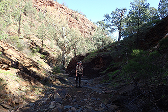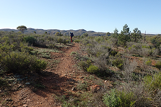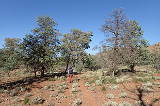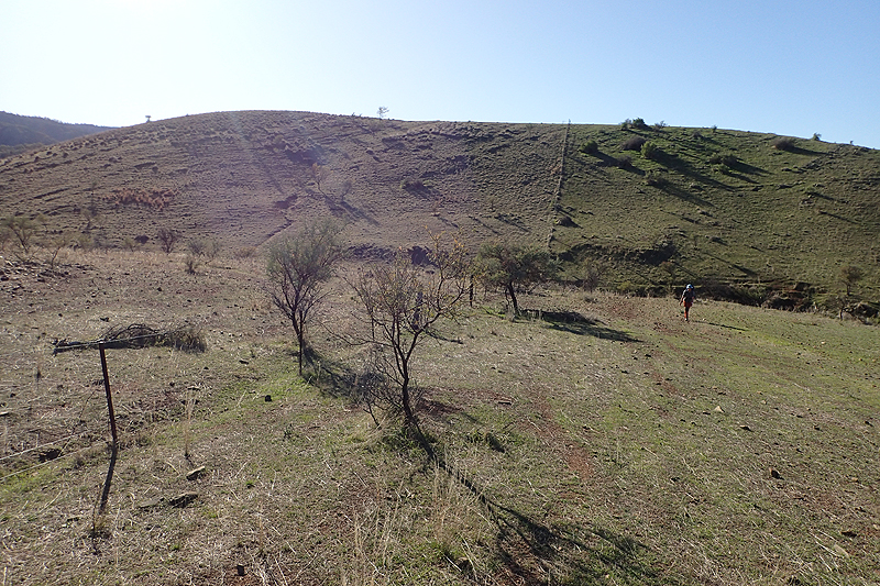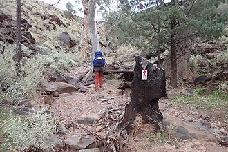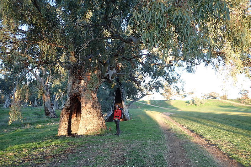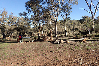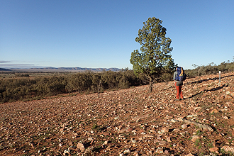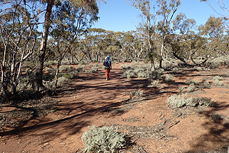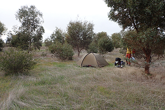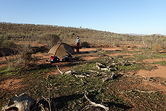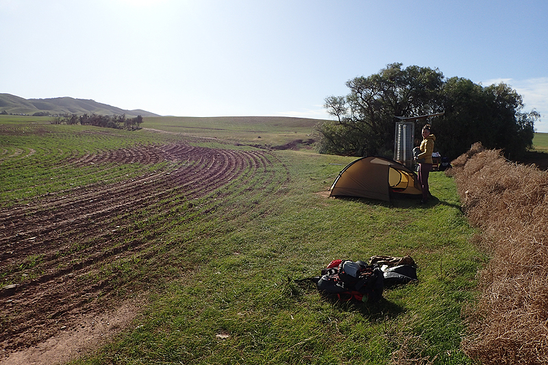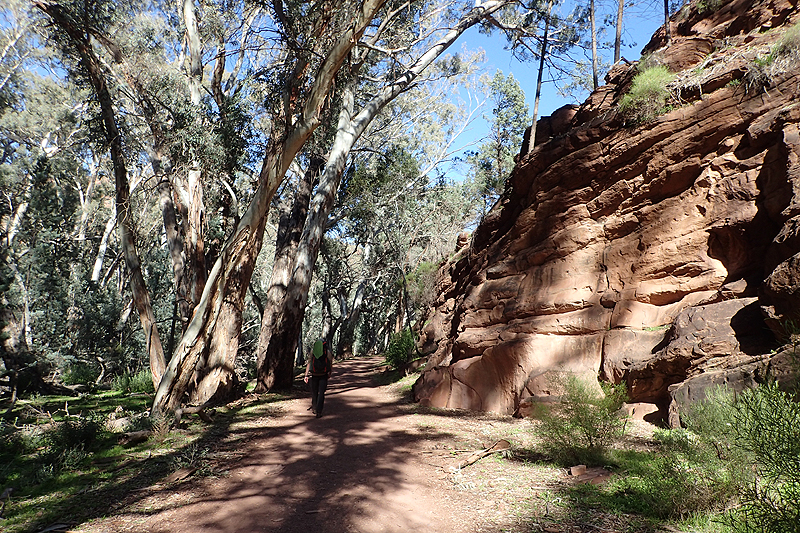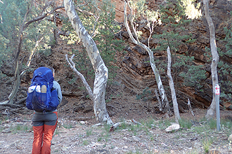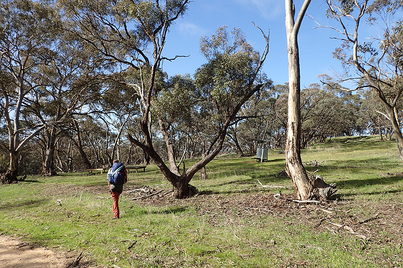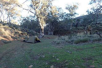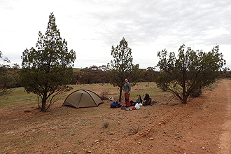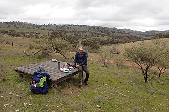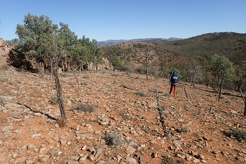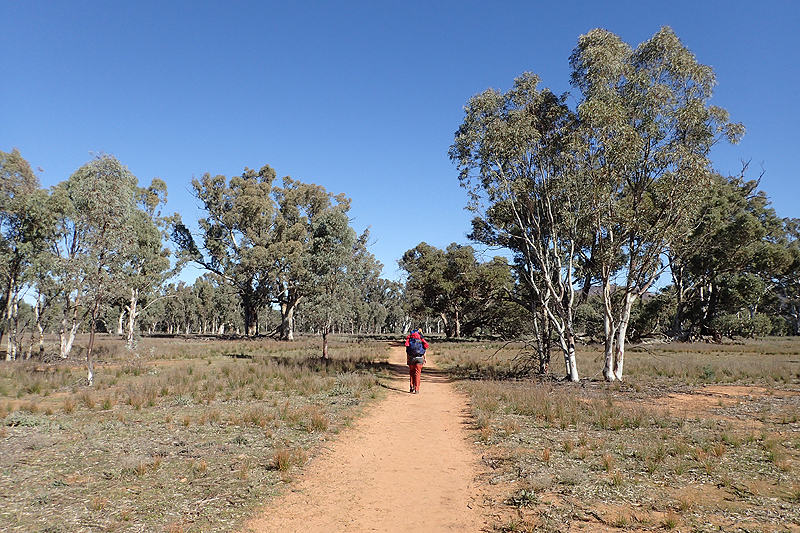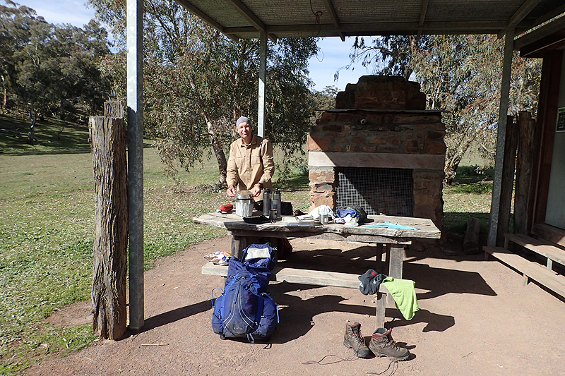 Breakfast never tasted this good! We climbed over our first stile and were on our way. The walking was very pleasant today, a lot of it in dry river beds, quite small and narrow. At some point we entered the domain of the desert fir tree which we love. We are drawn to fir trees anywhere in the world, especially as they have the cleanest floors beneath them for camping! We stopped at Pigeon Bore for lunch and to pick up water and then walked a few kilometres further until we found a nice place to camp.