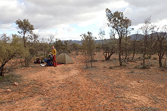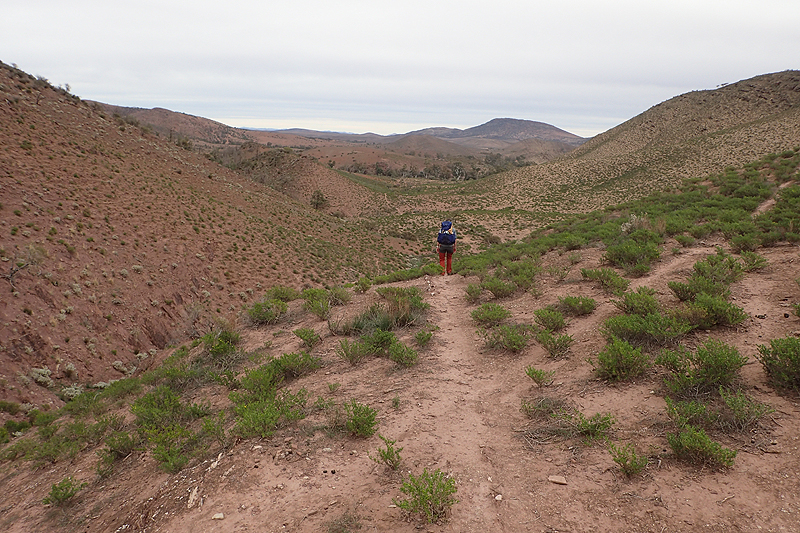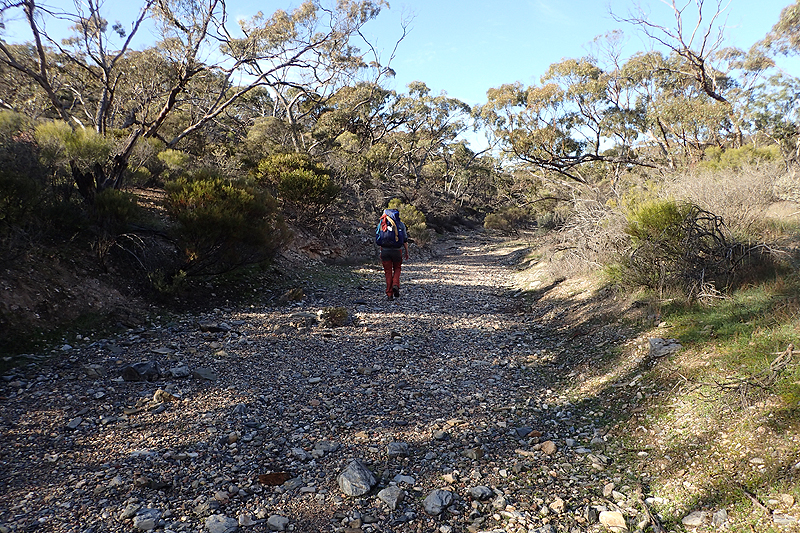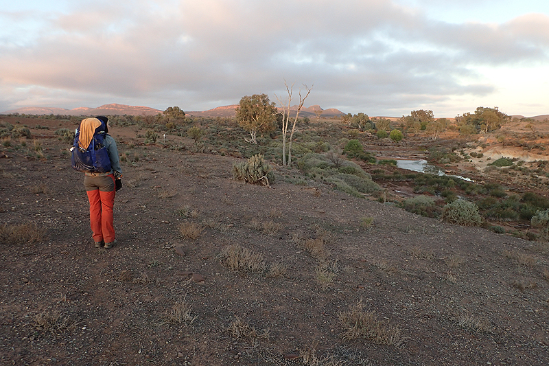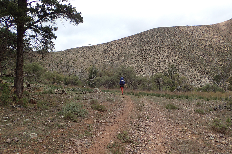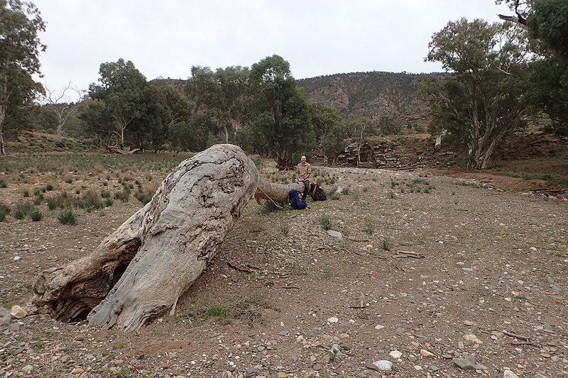 It was interesting reading all about the first European settlers at Aroona Station. The guy came, stayed for a few years and went back to England having made a fortune. Throughout our time on the Heysen we would read many stories of these settlers and usually they were tales of woe. After Aroona there is a climb which provides what soon becomes a regular feature of the Heysen - expansive views! The hike is full of them and often when you least expect. Here we had views to Brachina Gorge. Beautiful. We stopped for lunch at Trezona Campground and then walked on to Middlesite Water Hut which would have been a disappointment had you hung your hat on staying there. I am highly suspicious of huts harbouring rodents and this definitely looked to be the case. We ended up camping in a dry creek bed a few kilometres further on. We heard dingoes this night for the first and only time on the trip.