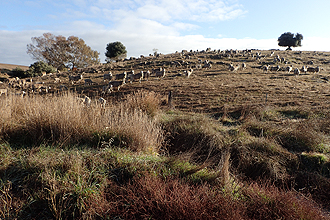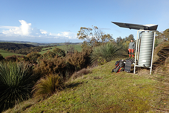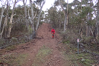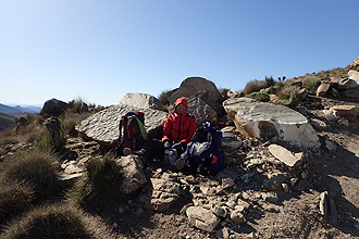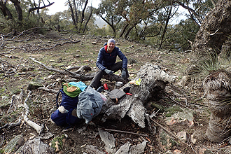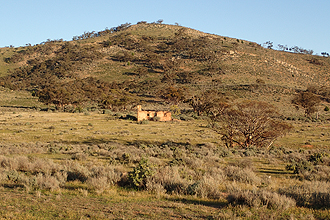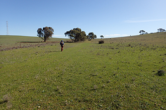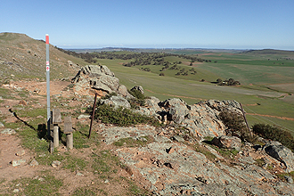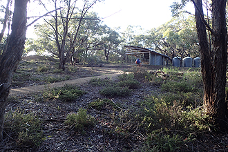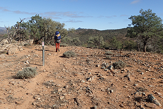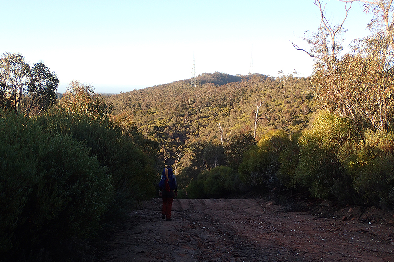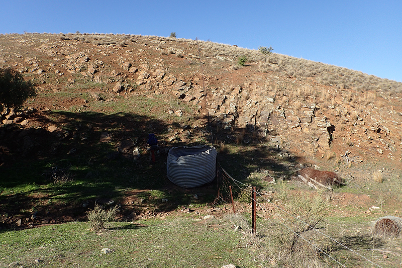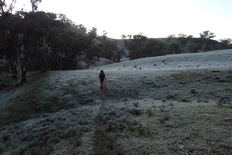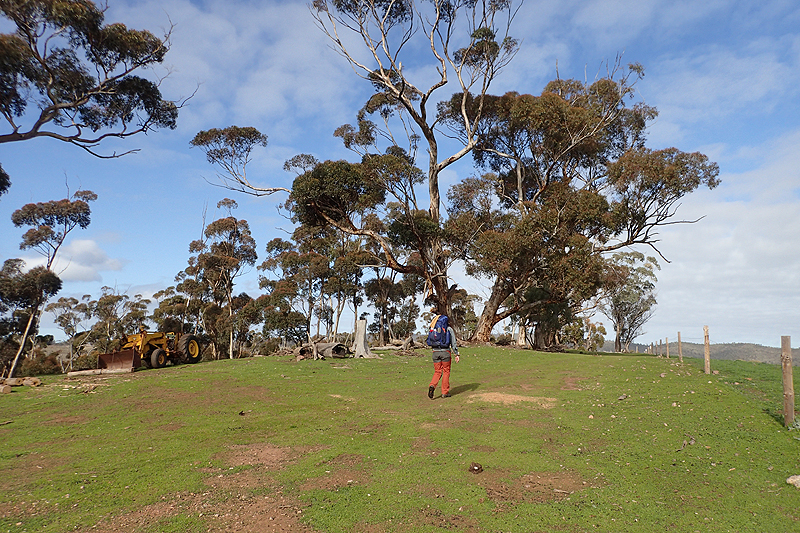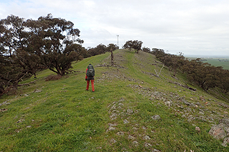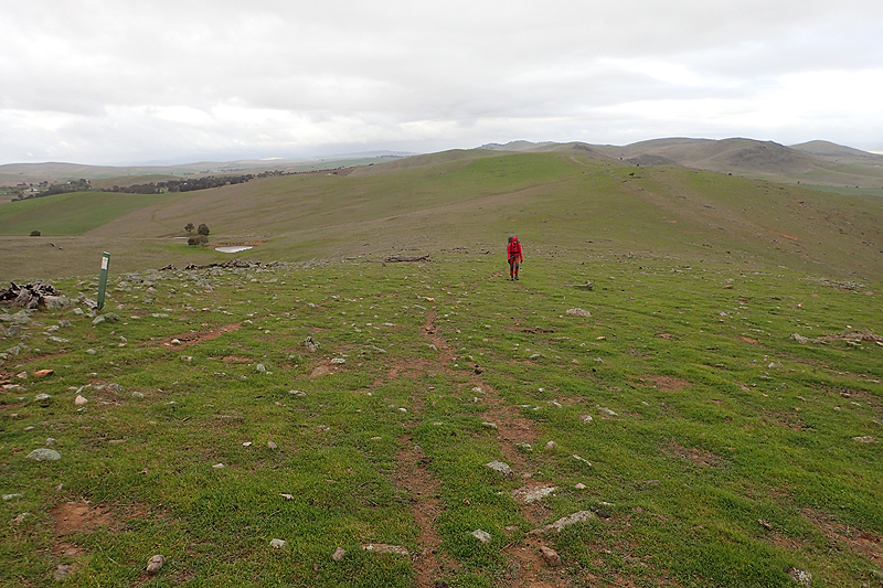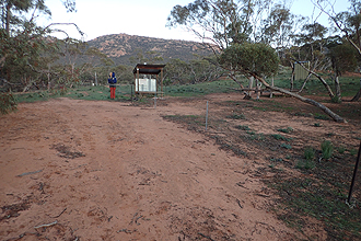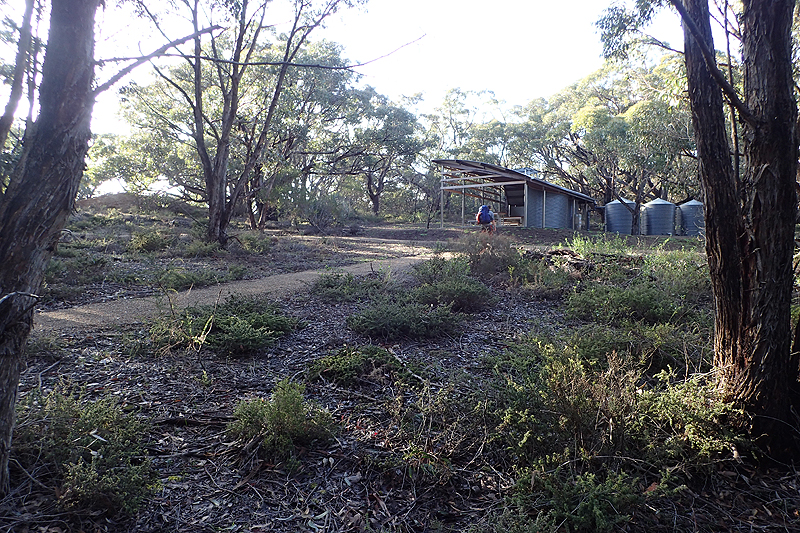 Frost overnight still encrusted grass and plants at 10:30 today. It would have been really cold overnight, it was cold walking. Very cold. There was a bit of road walking today on farmtracks that went up and down and along fencelines that went up and down too! We had a meal at Grays Hut and then hiked up the track to Mount Remarkable where we camped at the old Heysen campsite up there. There is a large firefighting tank with a small shelter. It was protected from the wind. We had carried water up there from Grays Hut as you obviously can't use the firefighting tank water. It was a good night up there.