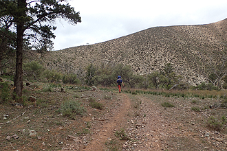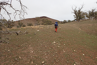 The wind grew stronger to possibly gale force as we climed up towards the ridge, however we were soon in the shelter of the creek bed which we would walk up for hours. We met two couples, both northbound end-to-enders and chatted to one. By the time we had climed out of the creek, we still had 15 km to go to Quorn and it was 11:30! We stopped at Dutchman's Stern Hut for lunch and then it was 12 km to go. The walking was much easier now but seemed slow. We left the conservation area and re-entered farmland. Here we came across our first "they cannot be serious" hill to walk up. I thought it was impossible/incorrectly signposted/a sick joke. I had to actually crawl up on all fours, it was that steep. We arrived at the campsite in Quorn at 16:30 which was acceptable. Tomorrow would be our first rest day!