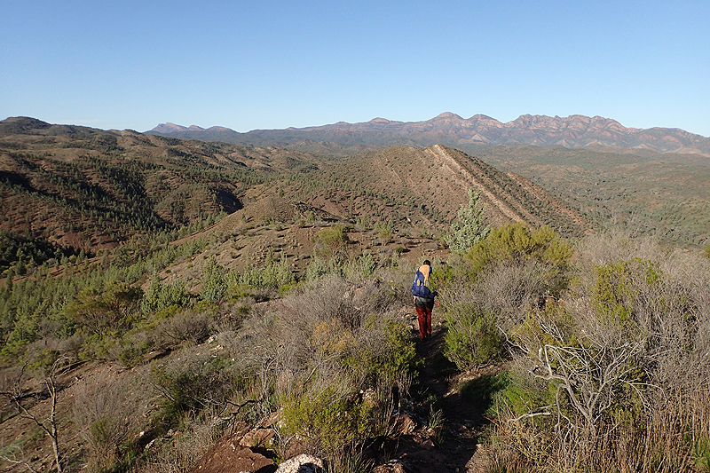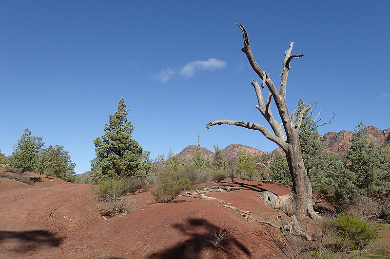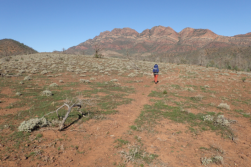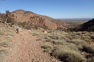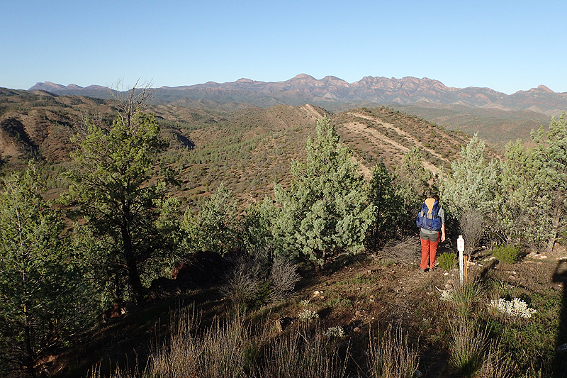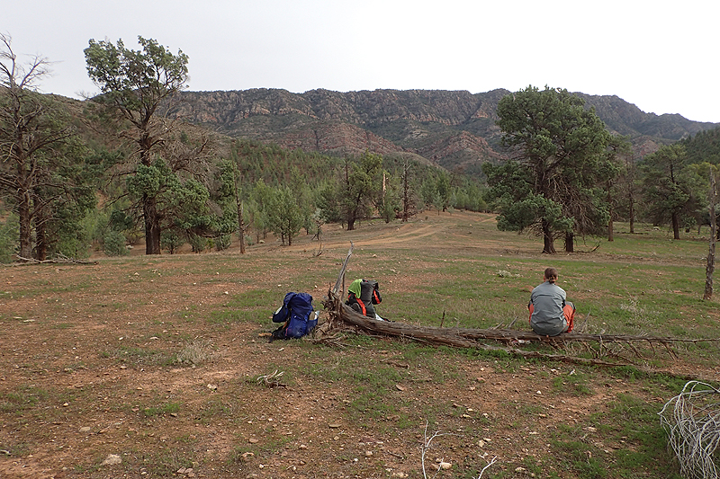 Short day today, only a few kilometres to Wilpena and then on to Bridle Gap. We grabbed a hot shower at Wilpena Campground which was great! The walking around here was really good on well-established paths often used by day hikers and the views from Bridle Gap were fabulous. There was a group of school students there on an Outdoor Ed trip and they had stopped for lunch but moved on, and then we had the place to ourselves.