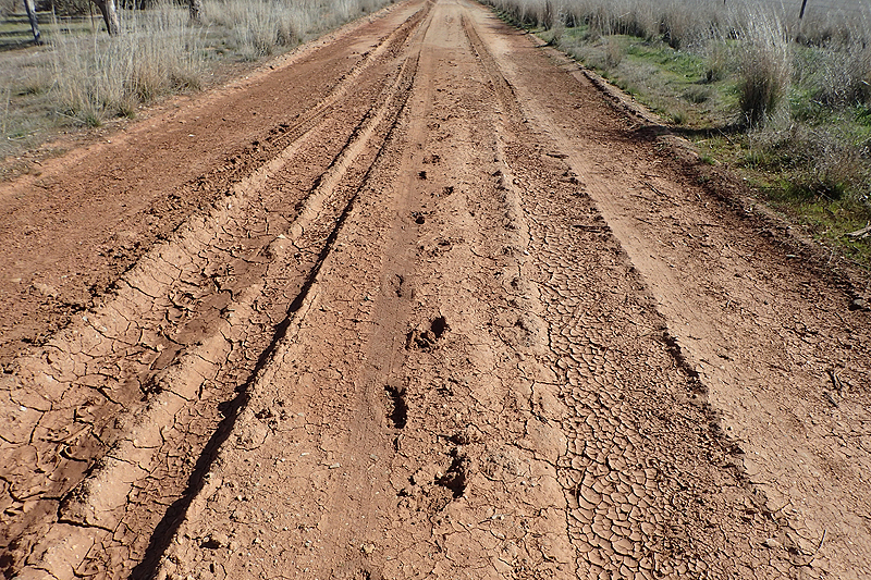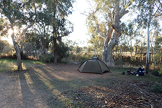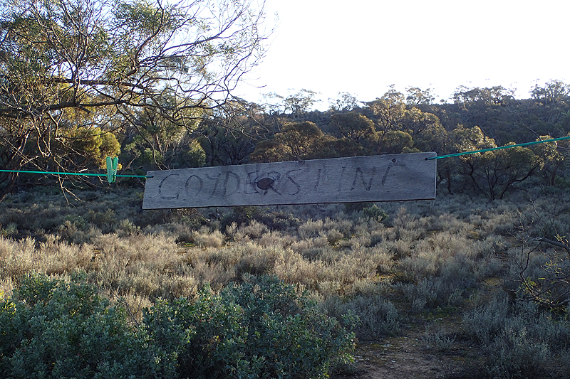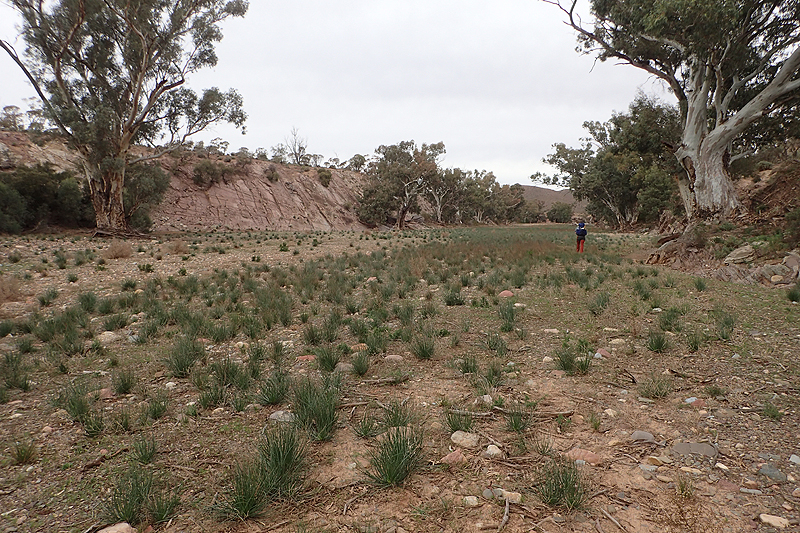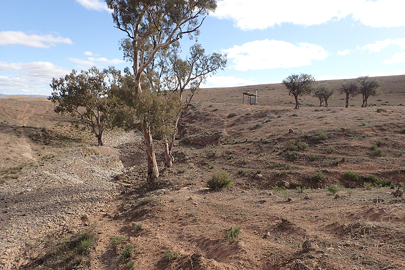 Mayo Hut was a lovely place to stop for lunch. Prior to reaching it there was an amazing waterhole; it seemed permanent, a small oasis. A lot of bird life. It was interesting to read about the history of the area and the Mayo family who set up this little dairy homestead, later turning their attention to harvesting massive red gum trees to support the developing railways and in the end having to leave the land with not much to show for it. Tough people who moved out to these tiny remote outposts, had 11 children (in this case) largely it appears so that they could have a reliable workforce for whatever farming they went into. We ended up camping out of the creek bed a few kilometres later on. The countryside here is very rough. Every plant is spiky and thorny, grass grows as spinifex and the soil is barren in between.