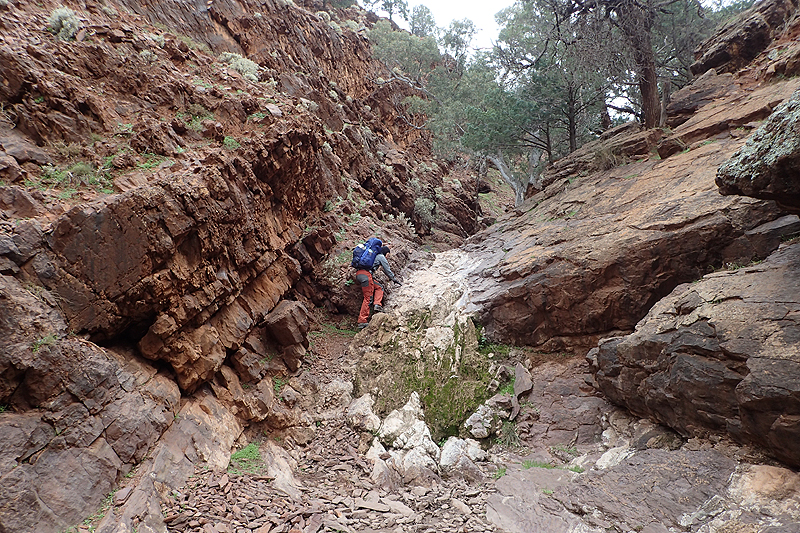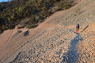 The mornings were cooling down now. The warmer days we had had til now have been a bit of a surprise. It would grow colder as we headed south. We left the National Park just after Bridle Gap. The rocky walls of the creek beds have amazing patterns in them. The bones of the earth were so obvious in this area. We reached Red Range walk-in site which was the first true Heysen campsite since the start. It is a great site with MPP (multi-purpose platform), toilet and seating area with small benches. It was occupied by a female north-bound thruhiker who had assumed every convenience for herself. Her ridiculous tarp (she would not have been the first person we came across who seemed not to appreciate the importance of a proper shelter on such a hike) was set up on the MPP, all her hand washed clothing (every water tank implores users to take only what they need) was hung up dry around the place and she had used every last little bench to attach guy ropes to so that her stupid shelter remained upright. We have on many occassions when traveling in remote areas where you don't come across many people made similar use of facilities (not in quite as extreme a manner though). When you are without any luxury it is easy to want to spread yourself out. However, the minute you see someone approaching, you jump up and start clearing things away to share the space. She made no effort. She just sort of joked about how "fresh" we looked and then tried to make herself out to be the big adventurer. We were really angry. After getting water we cooked, sitting on a log as far away from her as possible. We then walked off without speaking another word. I did not trust myself to say anything.