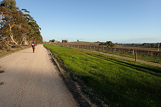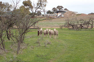 Kapunda has a Subway so that was amazing. We each had a footlong for breakfast and took one to go. We also ate pies at the local bakery. We did a bit of a resupply at the local, impressive Foodland. We would reach Tanunda tomorrow but bought a lot of food anyway. The load on our backs leaving Kapunda was quite heavy! On the medical front of course it is always good to have a pharmacy to visit! The cold, dry weather had caused chafing on the backs of my legs. I had purchased a small tube of lanolin in Burra as a barrier cream and had just finished it so picked up three more small tubes. It is amazing what this dry climate does to your skin. I ended up smearing lanolin everywhere, legs, hands, face. Mike has done the same on his little frost bitten cheeks. The sheep no longer look twice at us. We wear wool clothing and lanolin is our cosmetic of choice so I would guess we smell just like one. We saw vineyards today for the first time and almost beat the rain into Greenock, nearly running for the last couple of kilometers! The Greenoakc Oval was a nice place to camp. We met Stephanie, a northbound thru hiker and there was another couple of thruhikers as well. Zac, who hailed from Tasmania but was working as a pruner in the vineyards chatted to me as he was also planning on hiking the Heysen later in the year.