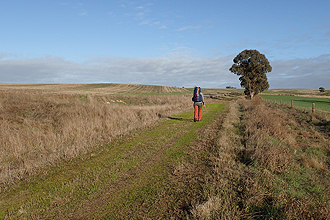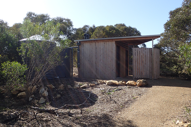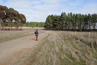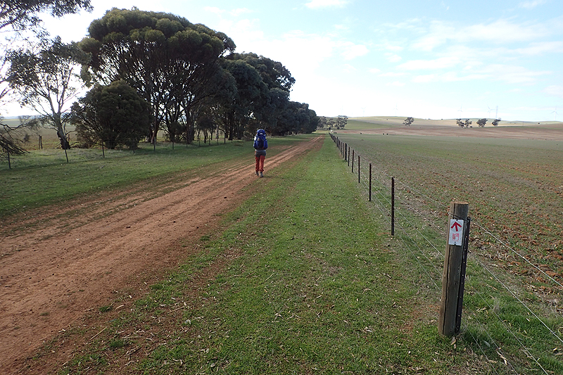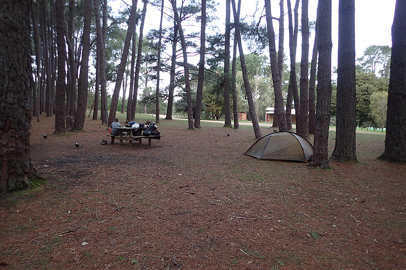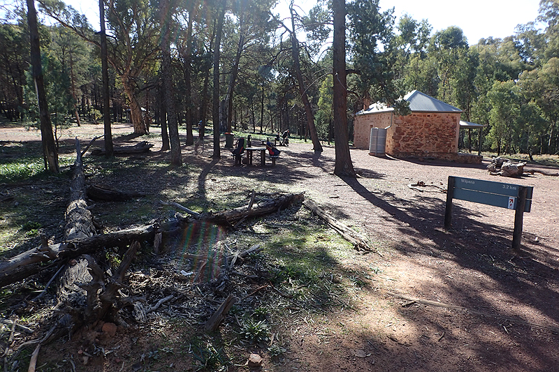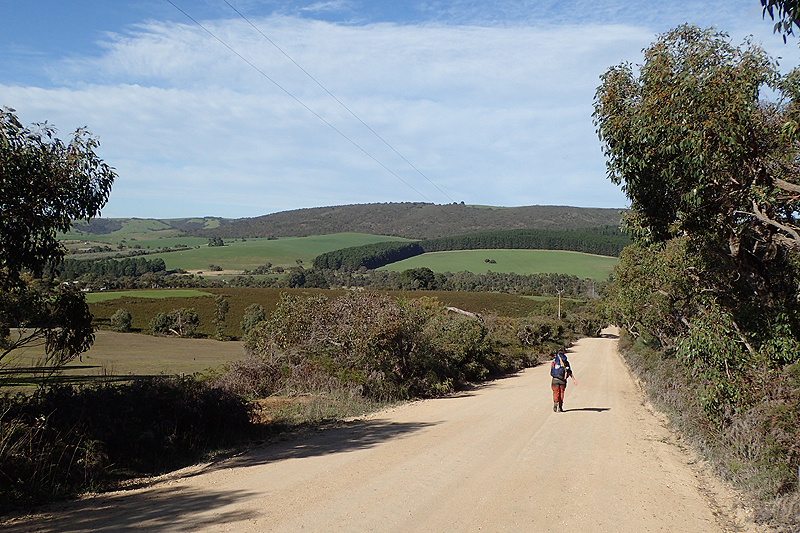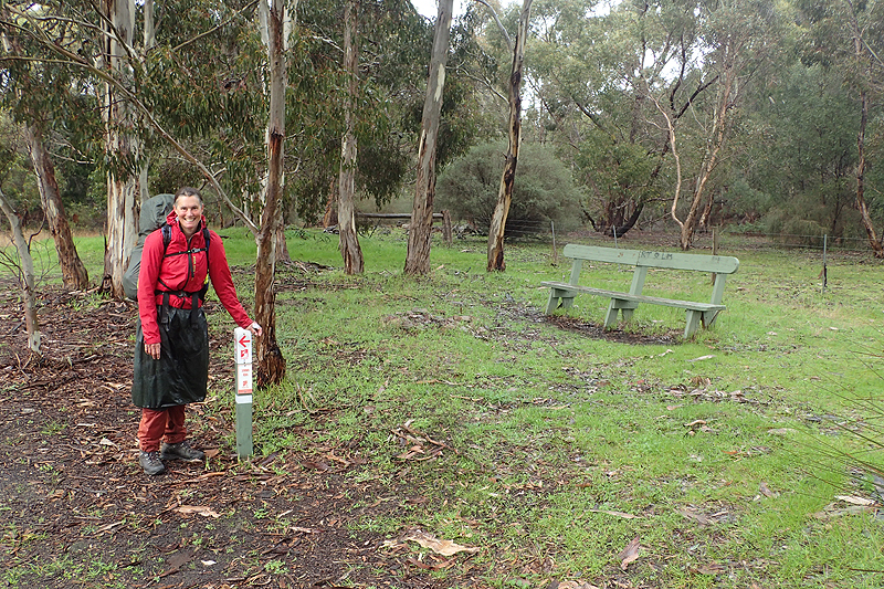 The walk into Bridgetown was pretty wet with pools of water everywhere. We were at the supermarket by 07:00. We resupplied and then sat at the picnic area nearby to eat and pack. It was clear, and very cold. It was an enjoyable walk along roads and farmlands today and the weather was pretty good. It was nice to be leaving the Adelaide area. The Heysen walk-in site was in a pine plantation so we loved that. We pitched our tent by a picnic table which felt like luxury. It was fun to have a pit toilet with electric light!