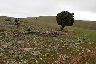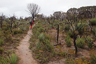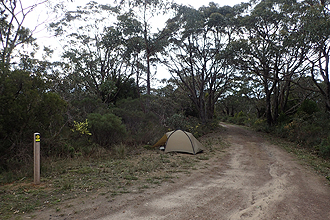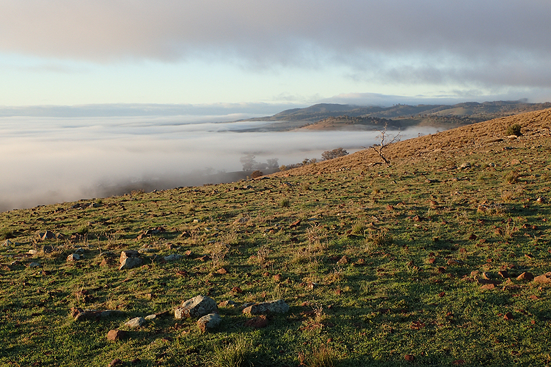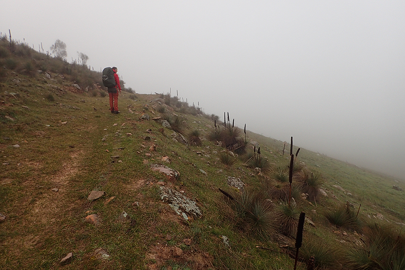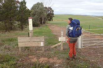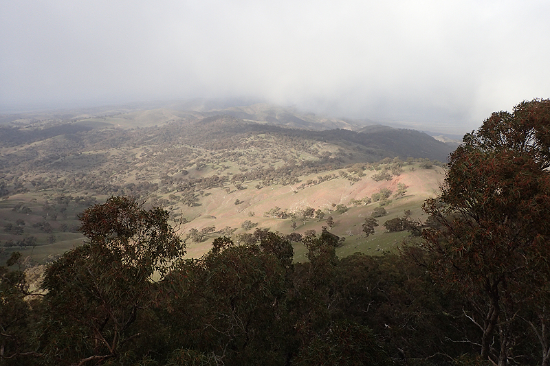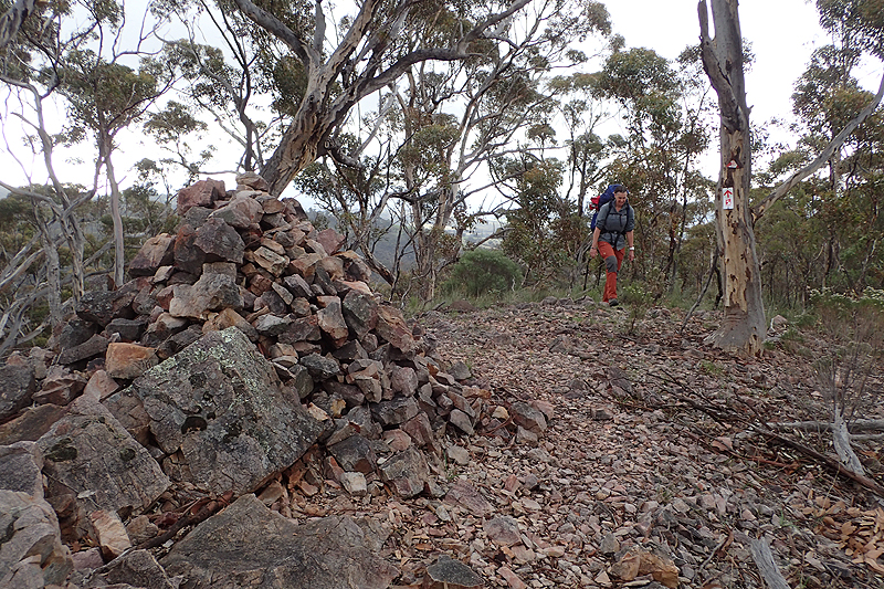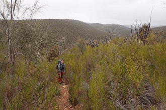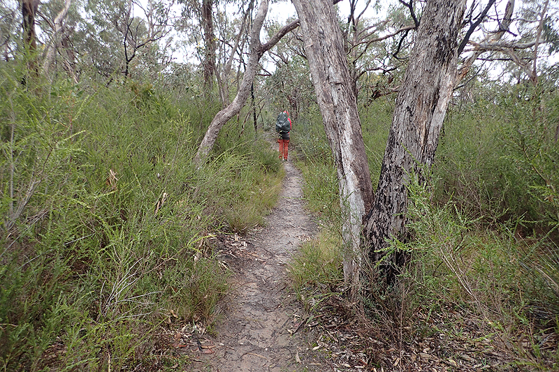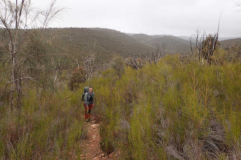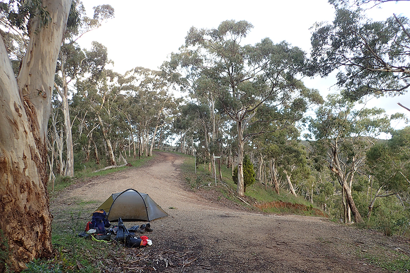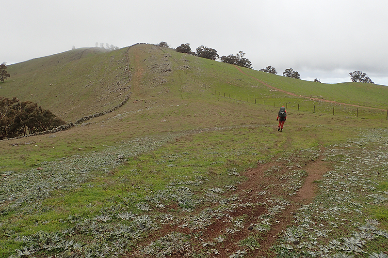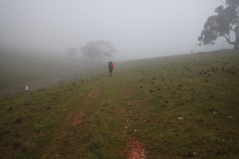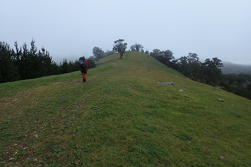 Waking at 05:30 as usual we couldn't believe it when we found ourselves and our campsite and everything enveloped in thick mist. You could only see a few metres in to either side. It was crazy after the beautiful day yesterday. We set off in raingear as the mist would make us wet. It cleared after a while. Once again a combination of farmer's fields and bushland areas as we made our way to Web Gap. As we got to the track which leads to Web Gap the Heysen intersects with the Lavendar Trail which was pretty cool. Web Gap was not ideal for camping as there was not a level spot to be had apart from the MPP and we did not really want to pitch on that. So we both spent the night sort of sliding down in the tent and having to claw our way back up again. It was also a very windy spot and probably would have been best to pick up water and walk down the other side to a road easement to camp.