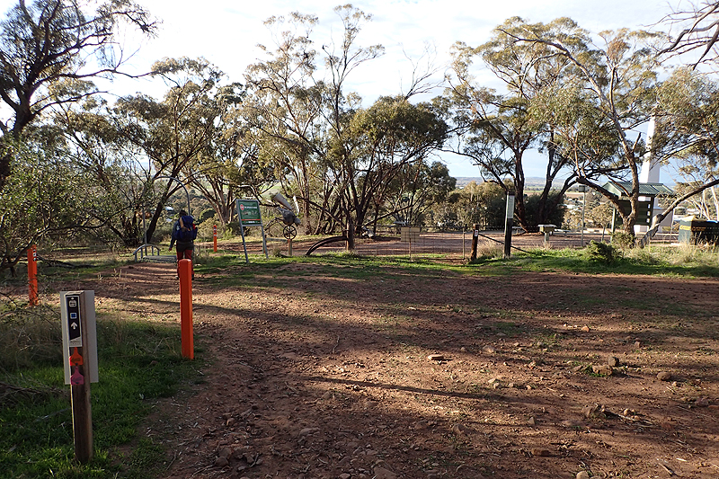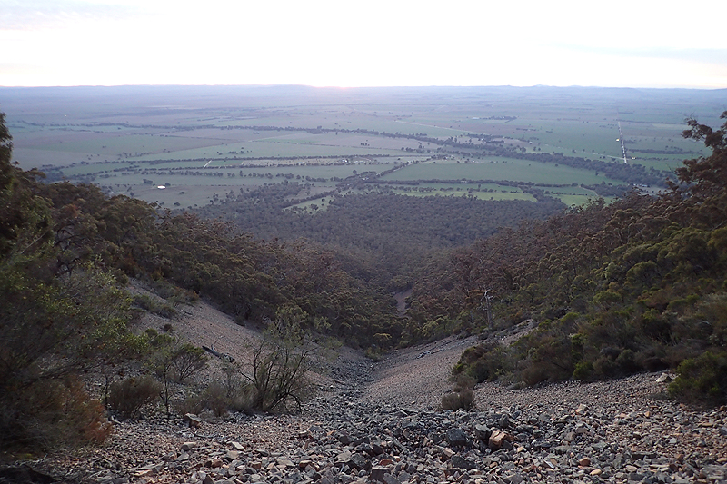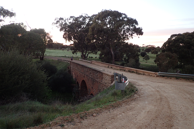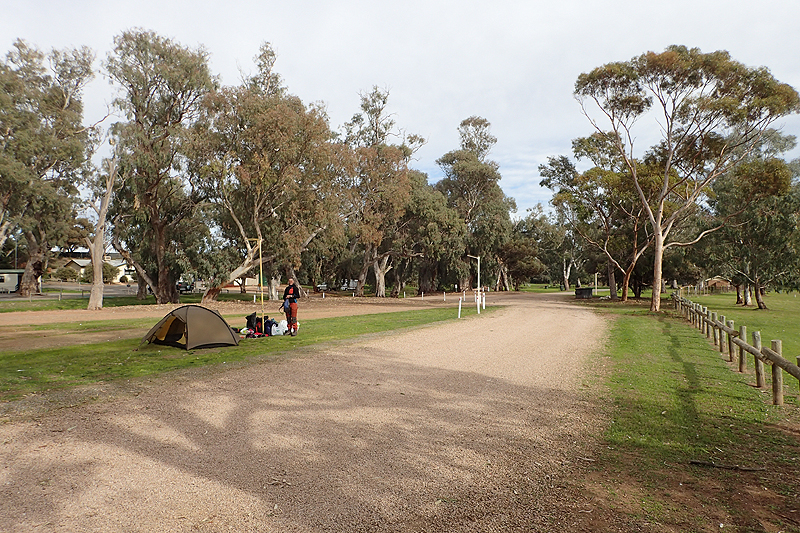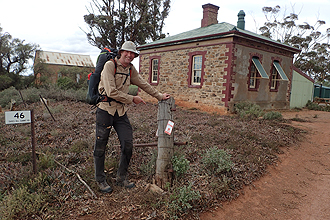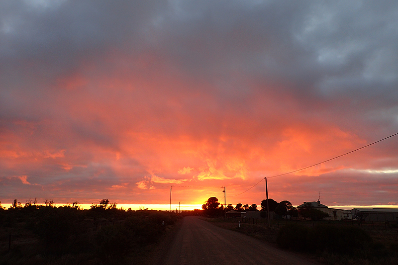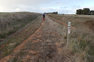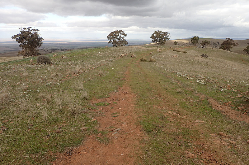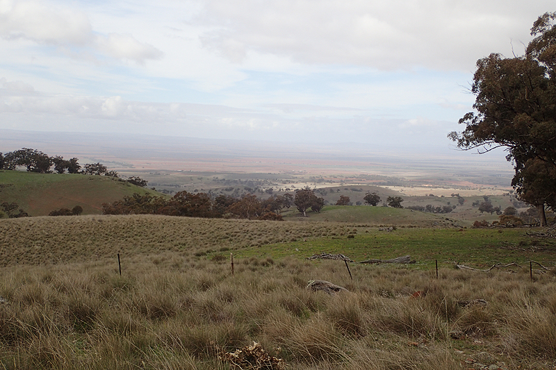 Spectacular sunrise and marvellous views of the land below. The climb down Mt Remarkable was as good as the climb up and then we were in Melrose which was freezing and full of families with little kids, all on bikes; Dad's cycling to pick up cappucino's on the main street. Must make what they paid for their flash bikes and gear worthwhile! We shopped at the supermarket which was fine for resupply to Crystal Brook. It was a lovely walk from there to Murraytown, along the way we experienced our first "road easements" which would become a regular feature of the hike from here on. These are basically corridors of land quarantined from adjacent farmlands that are for public access. They are usually roads or tracks. They uniquely facilitate a thru hike without trying. The Murraytown campsite was perfect and we were encouraged to set our tent up inside the undercover area which was a bonus as the first rain of the trip so far fell overnight! It is amazing that a little dot on the map like Murraytown, without any services has a community group with the energy and enthusiasm to attract visitors to it. Strangely, sleeping on a perfectly clean and polished concrete floor, my Nemo mattress punctured overnight and had to be fixed first thing. The hole was easily found and repaired. I knew it would be all downhill from here.