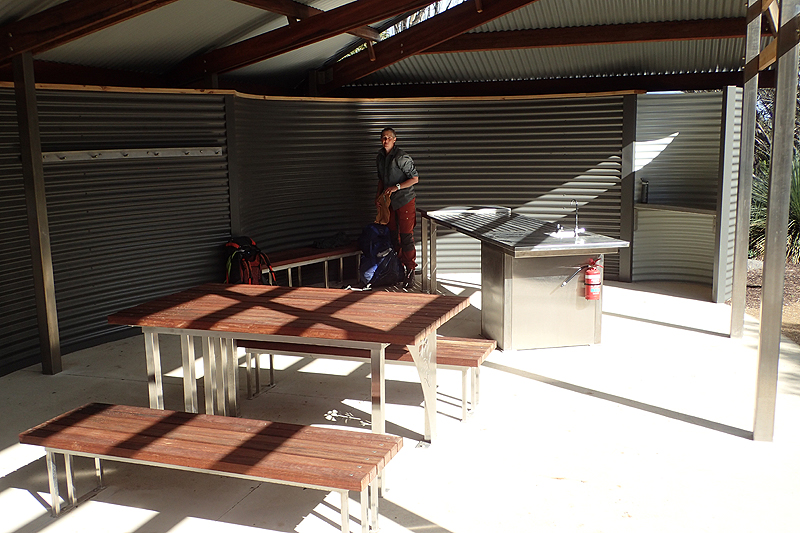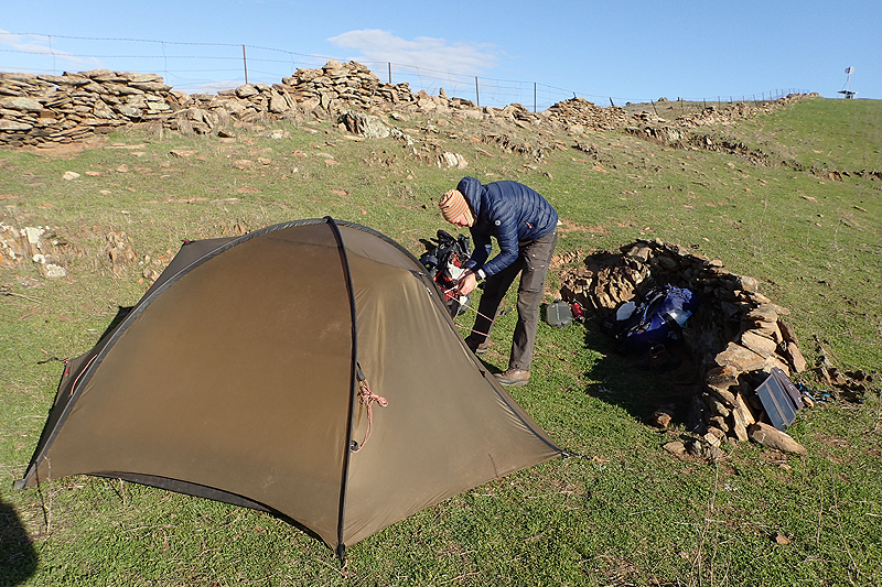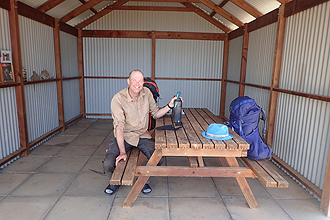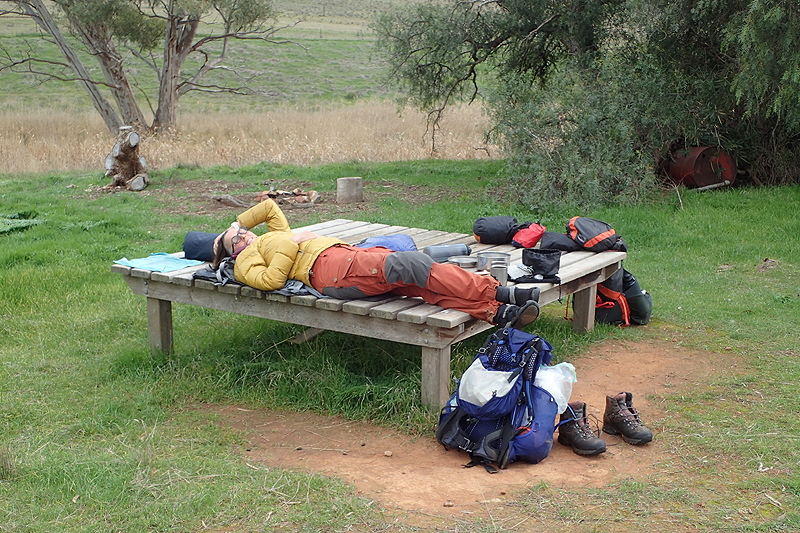 It was a windy night and when I saw Stephanie this morning she said that the wind had proved too much for her tent and she had ended up sleeping in the undercover area. Out tent had been fine. Solo hikers have big decisions to make when it comes to tents. We are philosophical about weight. What is 800g when you can't sleep and your tent is collapsing on your head at night? It's a funny thing, weight. It's mostly mental I think. I don't even think about it now, I always carry a kilogram of sugar, because running out of sugar for your porridge or tea is worse than carrying a kilogram of sugar. Some people did not even want a tent that weighs a kilogram.