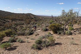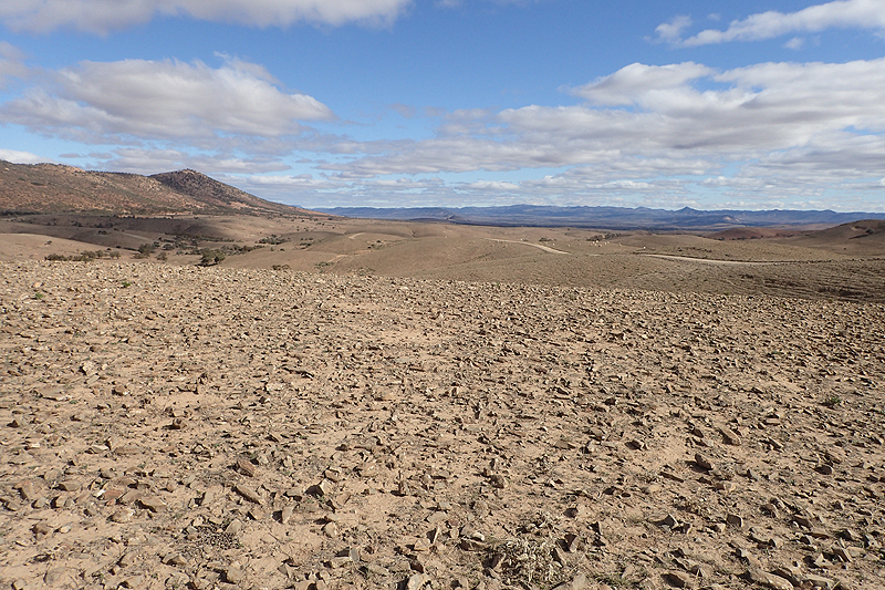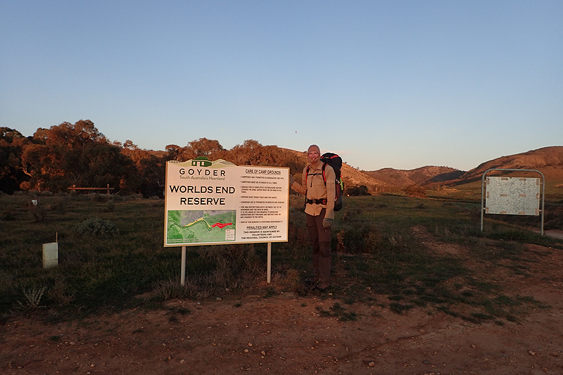 Really easy walk to World's End, along the edge of the Goyder all the way with views of Bald Hills. The walk-in site is just in the edge of a farmer's field but about 1 km further on you walk through the Worlds End Reserve with lovely campsites, bins and toilets but no water. We were happy camping at the walk-in site but were also impressed with the drive in campsite when we walked through it the next day. It was quiet at this time of year.