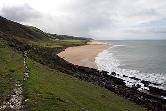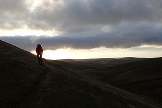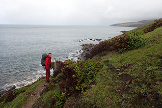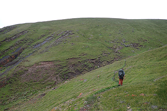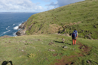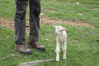 Walking through a field of sheep next morning, a teeny lamb sleeping next to the fence took a fancy to Mike and decided that he was a useful substitute mother. Mother was nowhere to be seen. You see this alot, the ewe leaves its lamb to sleep and goes off eating and socialising, but will always go back to the baby. So there is a bit of independence there. Sometimes though, you will see a dead ewe and then probably the baby just has to fend for itself as another ewe will not adopt it. This cute one followed after us bleating hopefully. We escaped over the next stile. These tiny lambs really play on one's heartstrings, but it is impossible to help.
