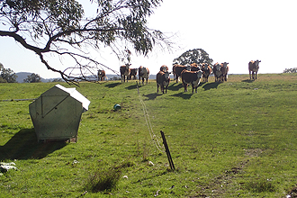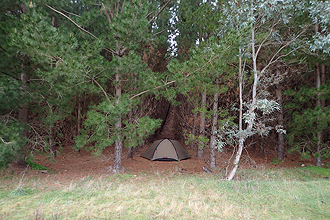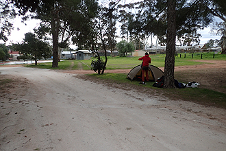 Another day in which we would bring back the past. Last year we spent our first night out of Adelaide at Centennial Drive campsite. The weather was quite harsh today. Very high winds which can wear you down. The positives: we caught our first glimpse of Adelaide from the top of a hill, we passed a herd of hairy cows, a herd of herefords wanted to walk with us and we enjoyed walking though the pine forests, sometimes having to take shelter under their branches due to rain. It was quite an early day though and as we sheltered from the heavy downpours at Centennial Drive, we replaced the slider on the tricky zip and now it works perfectly! We pitched our tent beneath the pine trees as there were a number of storm wwarnings, and the tent would be happiest there!