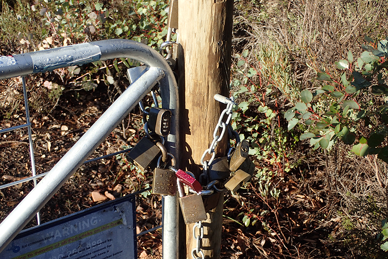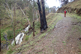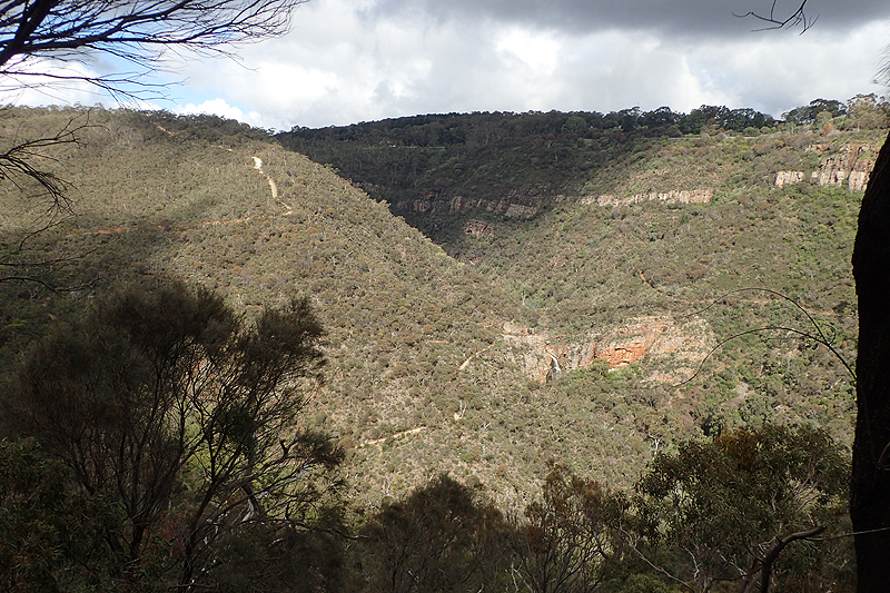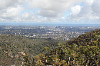 The firetrail walking continued today, as did the pine plantations and steep ascents and descents. These are the Mount Lofty Ranges after all. We have started to spend alot of time now walking in valleys alongside gushing creeks and don't really like it. We would prefer to be up high. These valley's are gloomy and wet. As they get little sunlight they are often slimey and mossy underfoot and the slip hazards are many. There was one climb in particular up a clay track and we were often on all fours. It was really steep, and really slimy. How a person would walk down it we didn't know. Not long after we met a northbound walker and so we guess she would have found out if it was possible or not! Maybe it's just one slip and then you're at the bottom! We were dreading this section through Morialta Falls and Norton Summit. The trail culture did change and it never really got restored after this. The remoteness of the trail was lost as we joined the well-trodden daytripper paths near the city. It felt as if it would be best to end the hike in Adelaide. Morialta Falls Conservation Park was impressive and of course the waterfalls were gushing. It was Sunday and a perfect weather day, so pretty busy with city folk. One bloke asked as he passed, "End-to-enders or training?". We laughed, and thought we must look better than we feel if he thought we were potentially only training! We did have a lovely break at a view site which provided endless views of the city and coastline on the perfectly clear day.