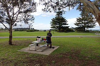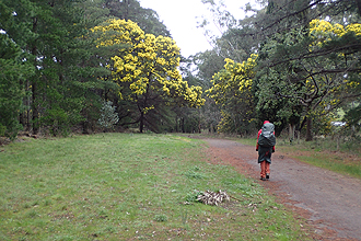 They were! That is, the koalas were sleeping in the trees below us! We set off and climbed down into the gully on the track and found ourselves almost eye level with the little furry grey bums of koalas. There were many, each in their own tree. It was very cute. We could not believe the teeny little twigs that they could lean against and just slumber on. They looked a little damp. One or two were asleep, but others were awake and didn't seem to mind us being there. It was a real highlight to see the koalas. Our walk took us over Mount Lofty and through the botanical gardens. The gardens were fabulous. Really quiet and peaceful. We sat for a while at a table and benches just on our own. With no other formal campsites available, we camped just before Bridgetown in a fairly busy spot for dogwalkers. No one seemed to mind.