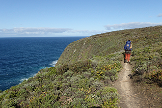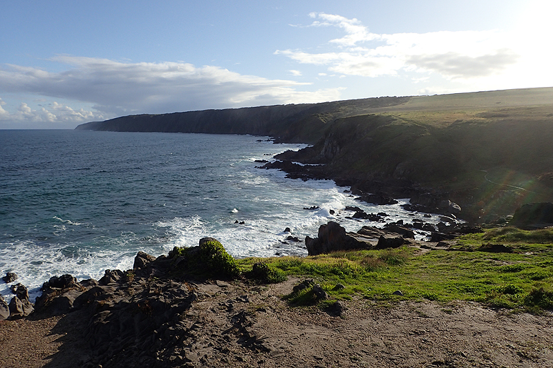 The final day's walk was a triumph. Beautiful day, not a cloud in the sky, stunning coastal walking. As we neared Cape Jervis it remained completely remote which was wonderful. We had planned to camp near the trail head and found the perfect spot on a ledge overlooking the lighthouse so we were lulled to sleep by the rhythm of the light which actually did not keep us awake. We were then well-placed to catch our bus into Adelaide the next day. It was the perfect end to it all. The bus trip was great, big luxury bus and the route was very scenic.