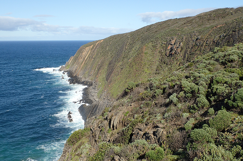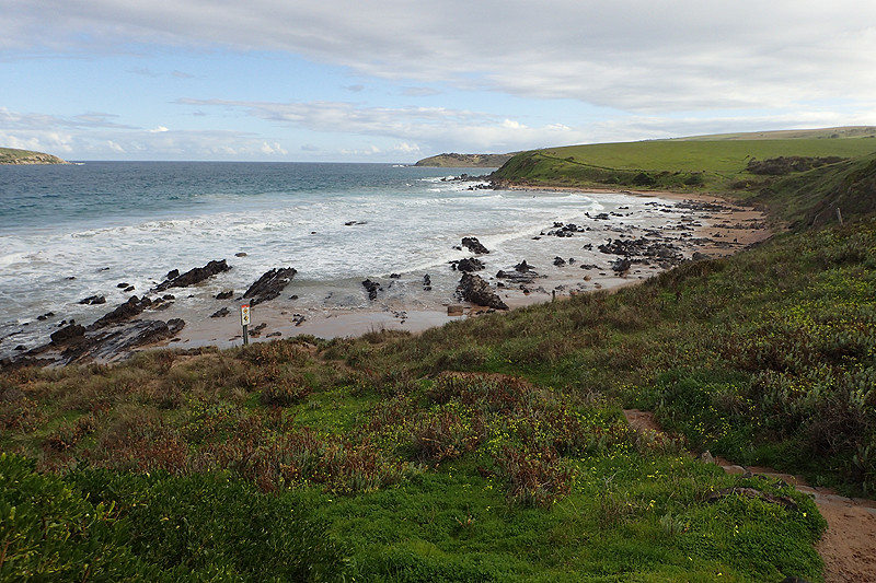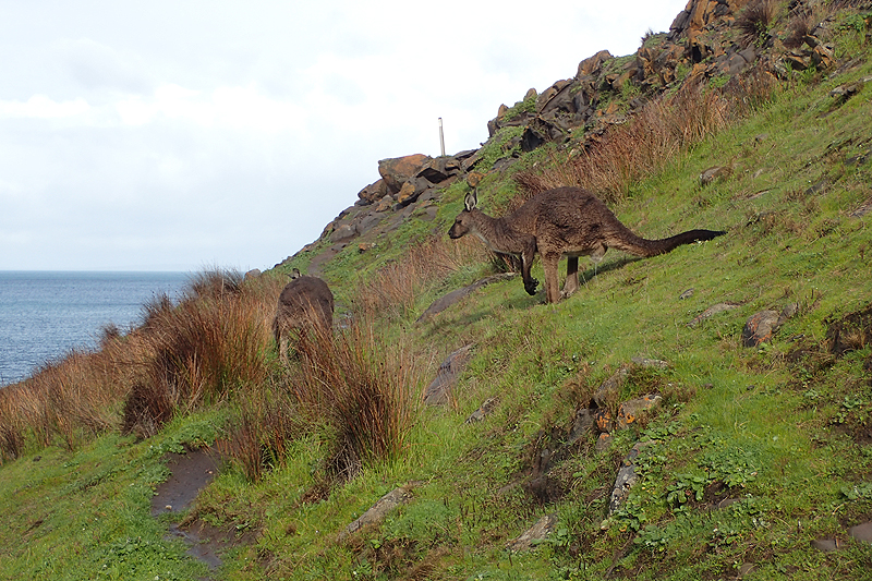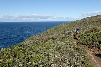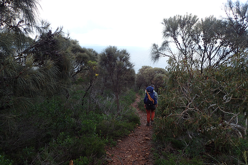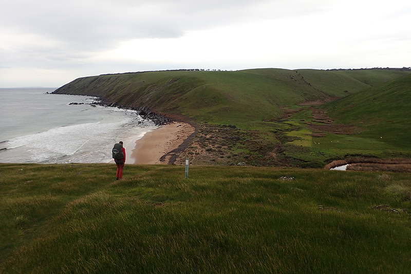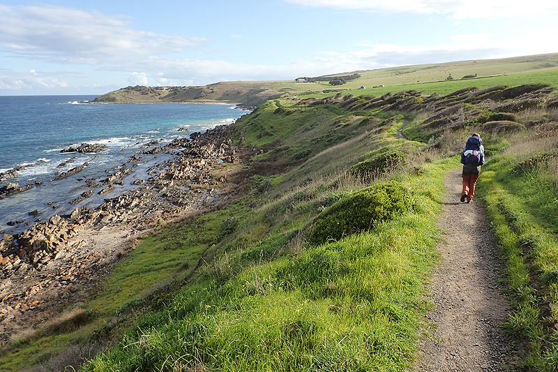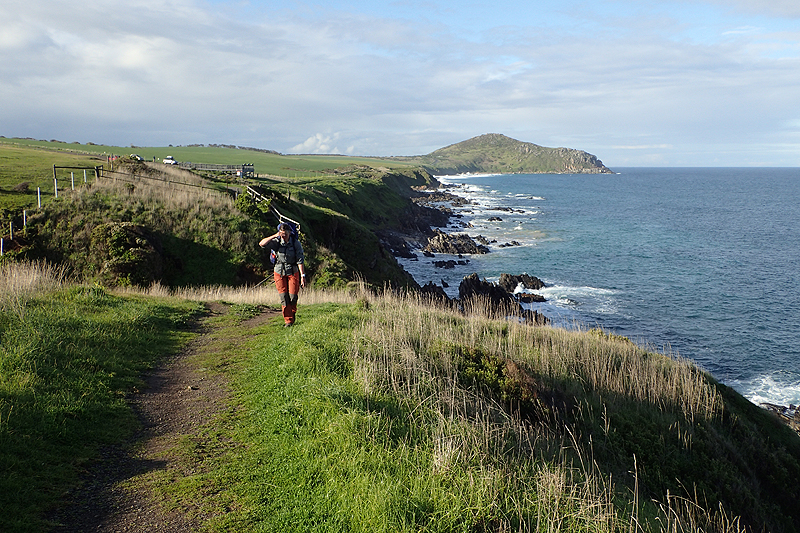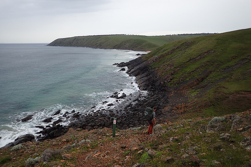Beautiful walking today again. The weather is still cool. We just look at the ocean all the time. The walk is right along the cliff edge. We stopped at Sand Dunes site, the first of four brand new Heysen sites on this section of the trail. They require pre-booking and payment however we did not see any other campers at any of them. They have thoughtfully laid out tent sites and pretty paths of woodchip. Pretty impressive stuff. We instead pushed on a bit and camped just after Parson's Beach. Rain came in overnight.