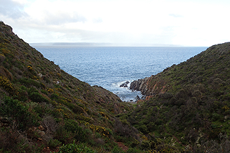 Our plan was to camp at Victor Harbour and we had a lovely walk getting there, but when we arrived at the campsite which was on the water we suddenly did not like the idea of being so hemmed in. So we went and resupplied in town and sat a while at the beach picnic area and then set off on the last leg of the hike. The Heysen is now called the Wild South Coast Way and is marketed as a stand alone hike as well as part of the Heysen. The stretch from Victor Harbour up to Waitpinga Cliffs is really a "wow" situation. It is incredibly beautiful and wild. It is amazing how often on this hike through the most arid state on the most arid continent, you will think, "This looks just like the SCottish Highlands" or "We could be on the outer Hebrides". It is a surprising place at the right time of year. A long time back before reaching Quorn we met a couple of thru hikers northbound and the lady described this section as "the icing on the cake". She was right. All of a sudden the gears have shifted and we are just taking our time, sitting on every bench to admire the view and not watching the clock as much. We found a wonderful camp spot just before the cliffs with an amazing view and sunset.