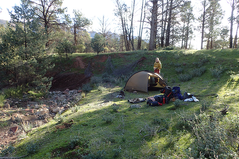 After Red Range it was mainly flat creek walking and we found an easy campspot not too far away.