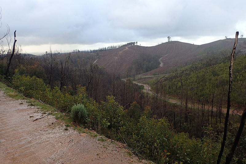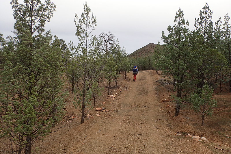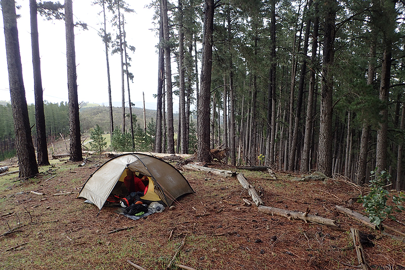 It was a rainy morning and so we took advantage of the undercover area adjacent to the hut to pack and have brekky. It was a rainy day and also a day interrupted by a strange and confusing reroute which was badly signposted and never explained. This was through a SA Forestry plantation due to harvesting and the experience would be repeated a few days later. It seems there is a communication breakdown between the SA Forestry contractors and The Heysen Trail. On this occassion there was just a sign to say there was a reroute and to go "that way" but after that, crickets. We were left to sort out the route for ourselves. All was not lost though as we ended up walking past various huts and shelters. A third trail exists from Kapunda and intersepts with the Heysen from time to time and that is the Kidman Trail, for horse riders and there was particular camping for this trail too, accommodating horses. So that was interesting. We ended up walking right through the area recently harvested but there were no active logging operations so that was okay. There is always something lovely and open about a freshly harvested pineforest. The landscape is denuded and the logs lie in piles. The piney scent is just divine. We reached Kyeema Conservation Park and camped there. We picked a level place but it stormed that night and Mike's vestibule was a centimetre deep in water but we remained dry.